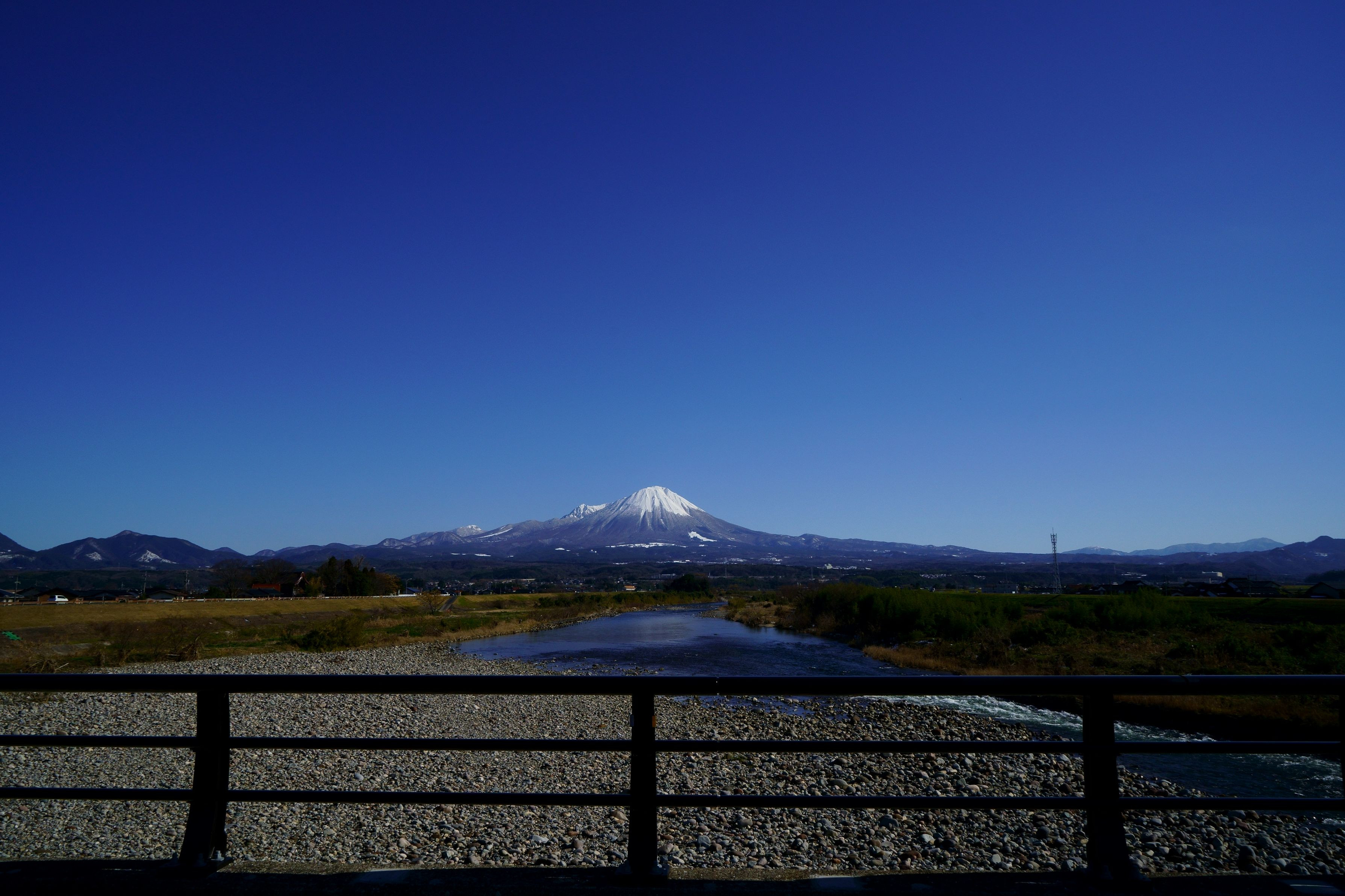 鳥取県米子市にある日野橋から撮影しました。 この時期はスキー場にも雪が積り、綺麗な大山を望めます