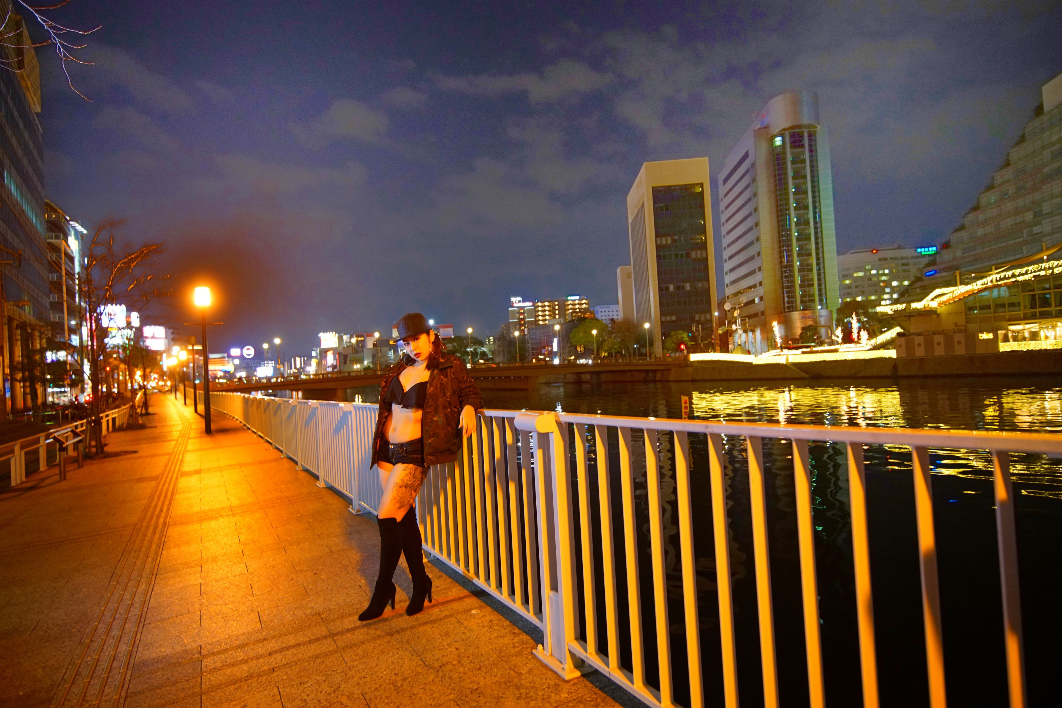 深夜の個展のためのポートレート撮影..