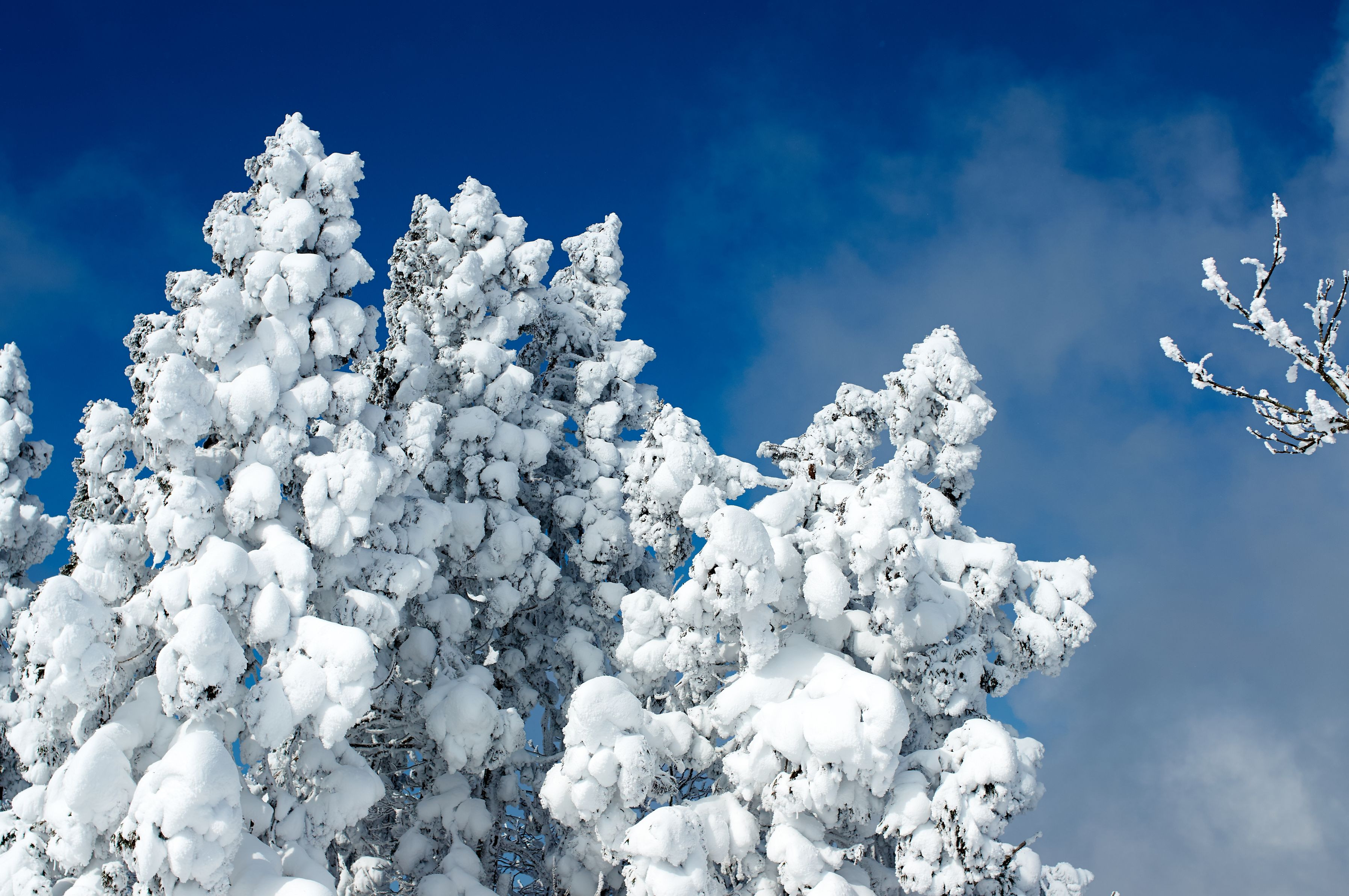 雪をかぶった木々。 盛大な樹氷。 雪山は美しく、歩くのが本当に楽しい。