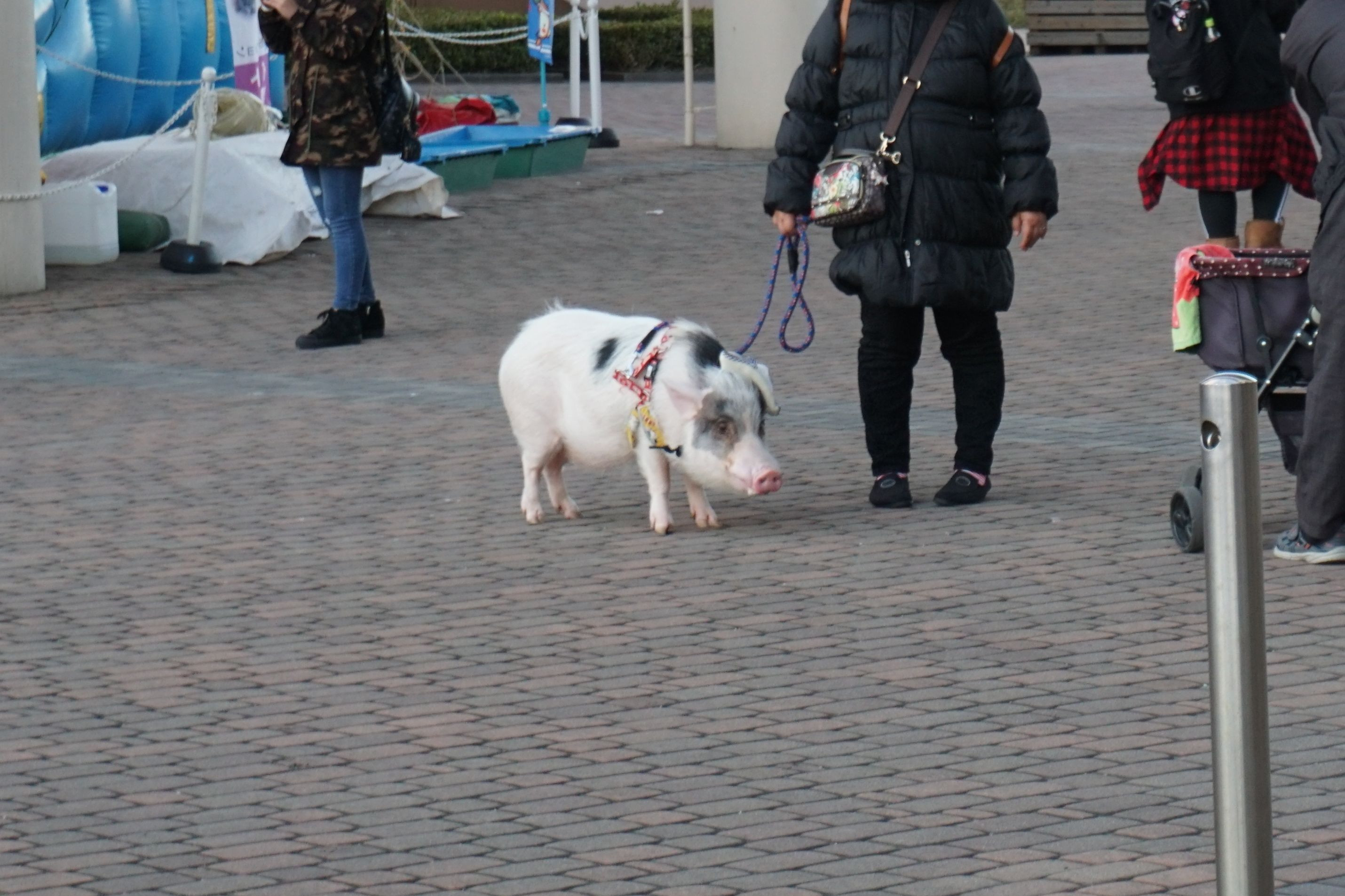豚君が散歩しているのを偶然見かけました。かなりの注目度でした。