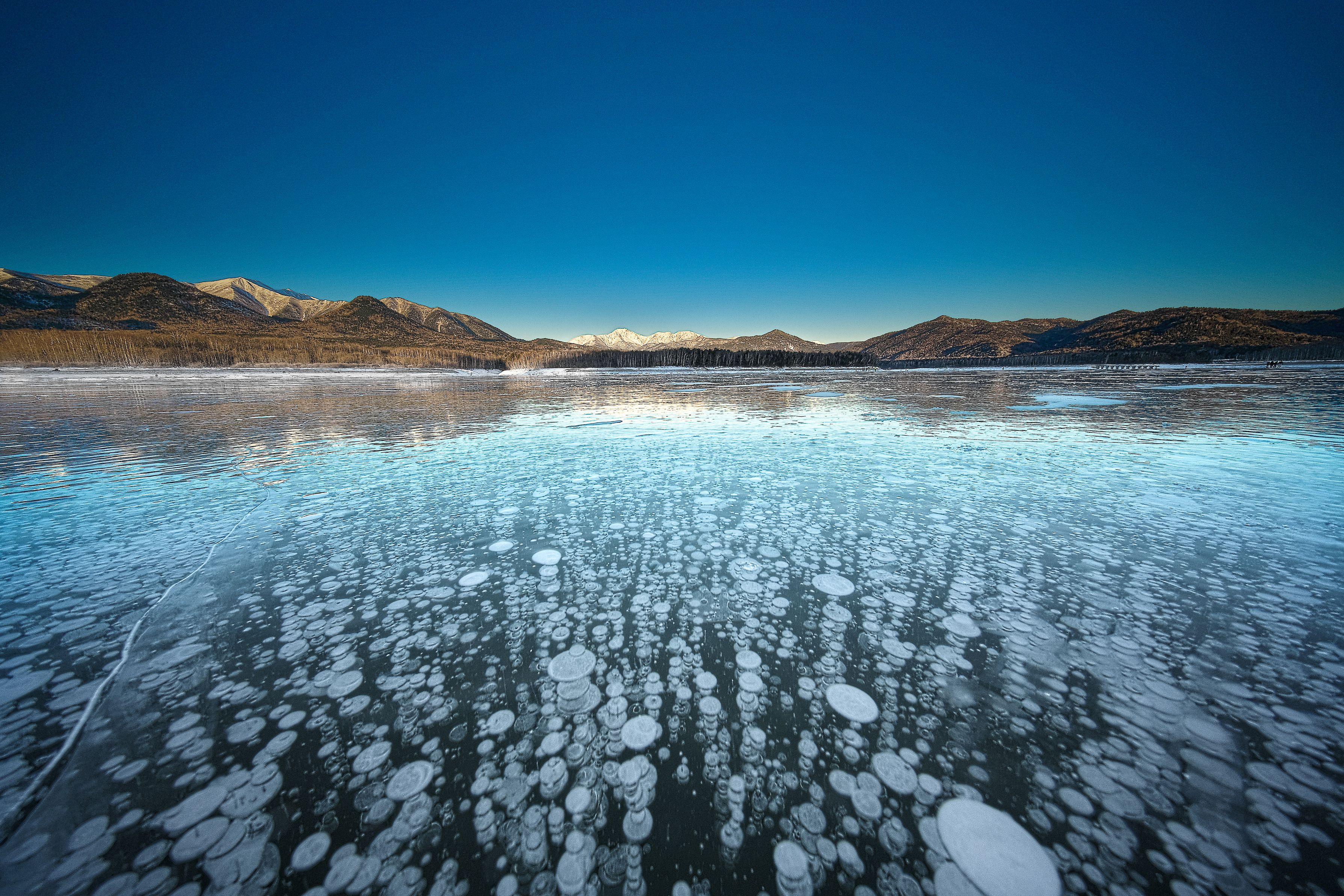 2018/1/13 上士幌町糠平湖 α9+Voigtlander HELIAR-HYPER WIDE 10mm F5.6+NiSi NANO REVERSE IR GND 8 まるで大量発生したクラゲの群れのようなアイスバブル(*^^)v