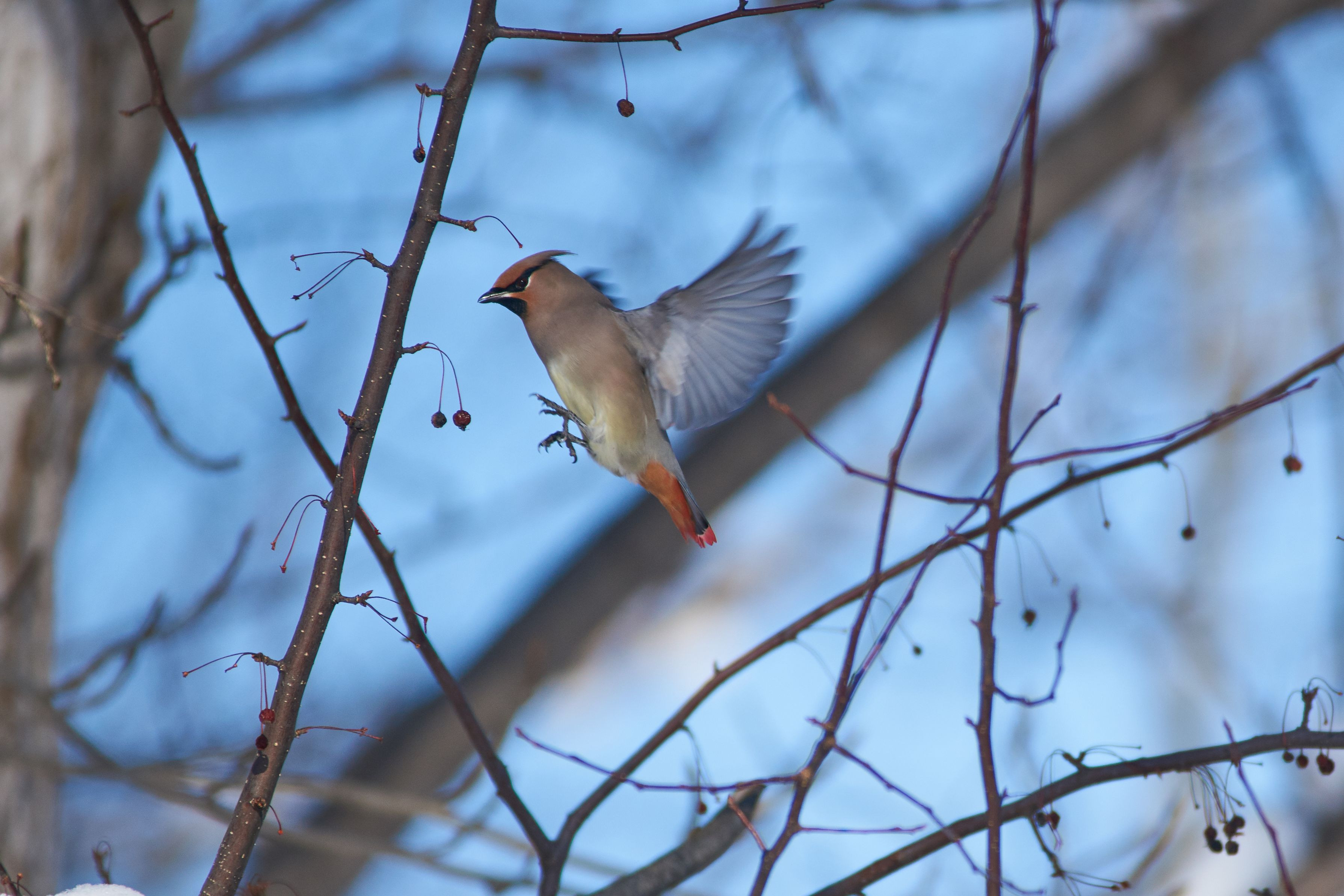 今シーズン初ヒレンジャク撮影です。