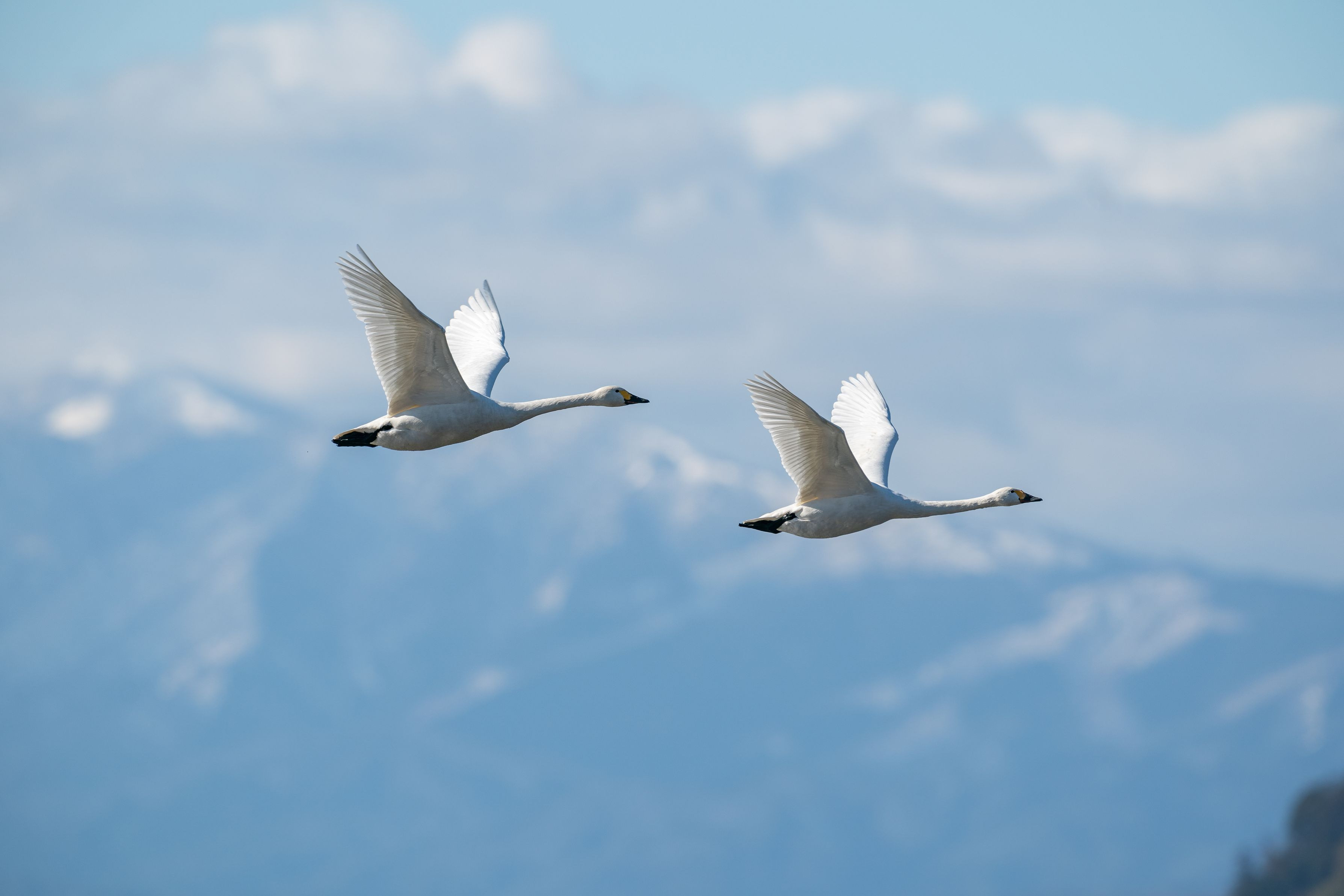 雪が残る山を背景に入れたくてコハクチョウと重なる瞬間をまちました。 なかなかいい高さを飛んでくれませんでしたが、それでも何枚かこんな 感じのを撮ることができました。 #コハクチョウ#