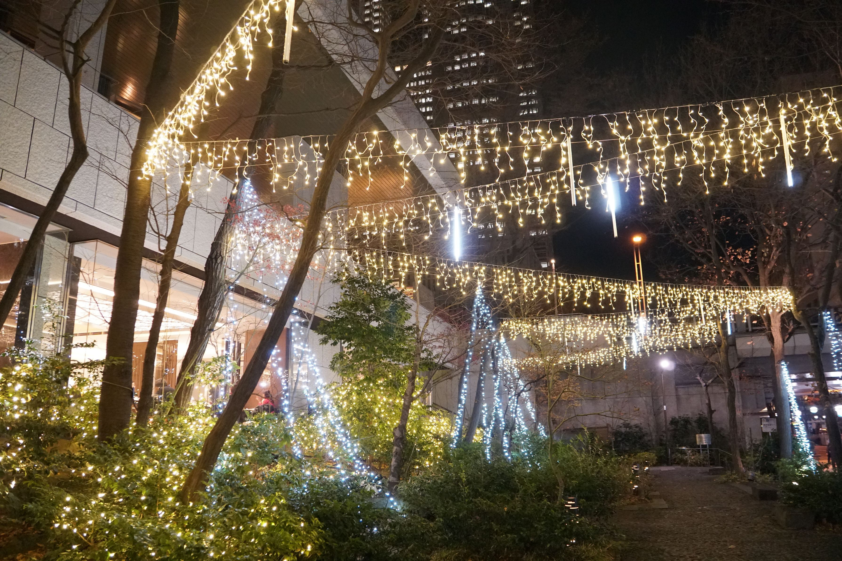 東京西新宿にある京王プラザホテルの裏庭 小さな庭に工夫されたイルミネーションが綺麗です。