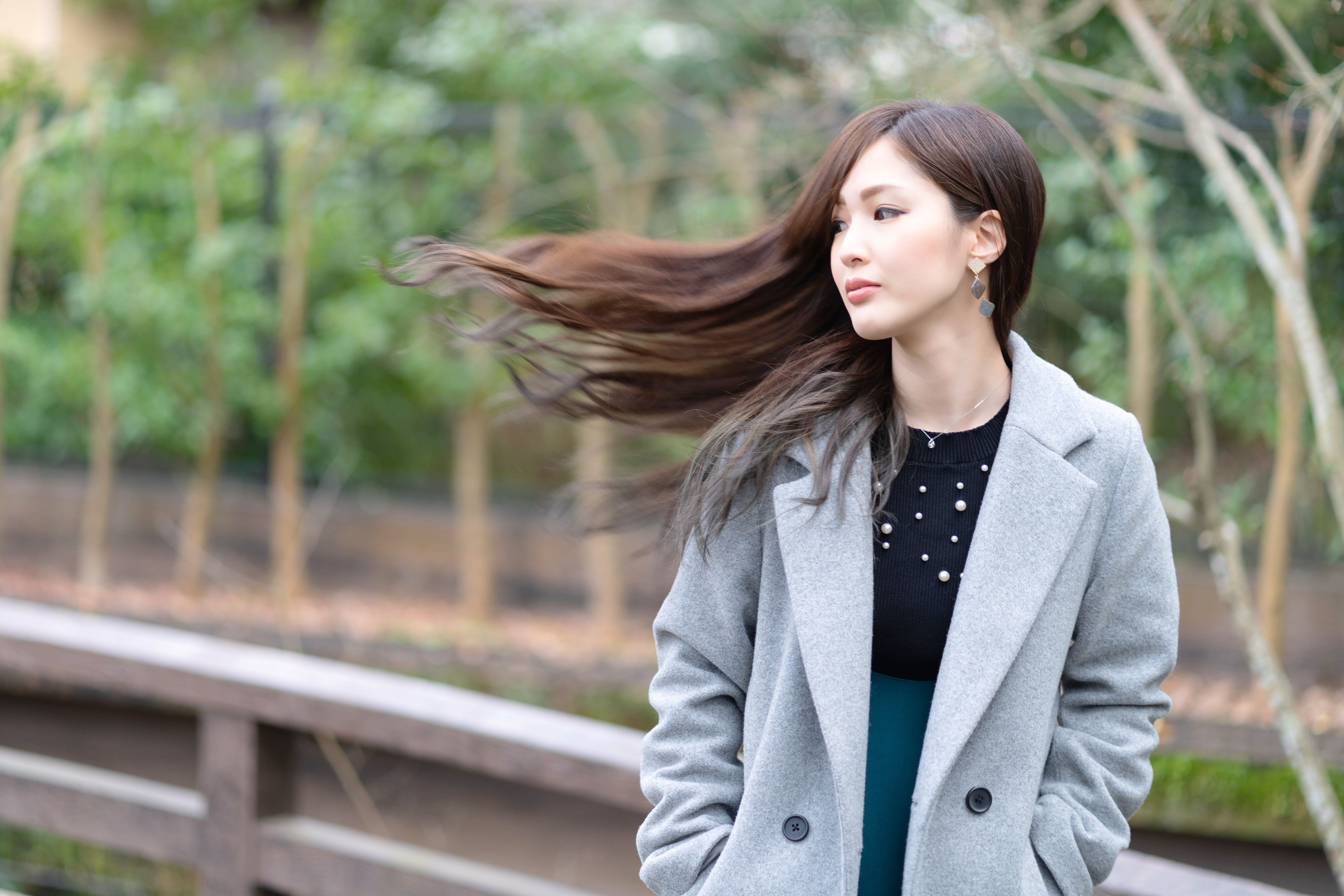 無風状態の中でしたので、モデルさんに首を振ってもらい髪を靡かせました。