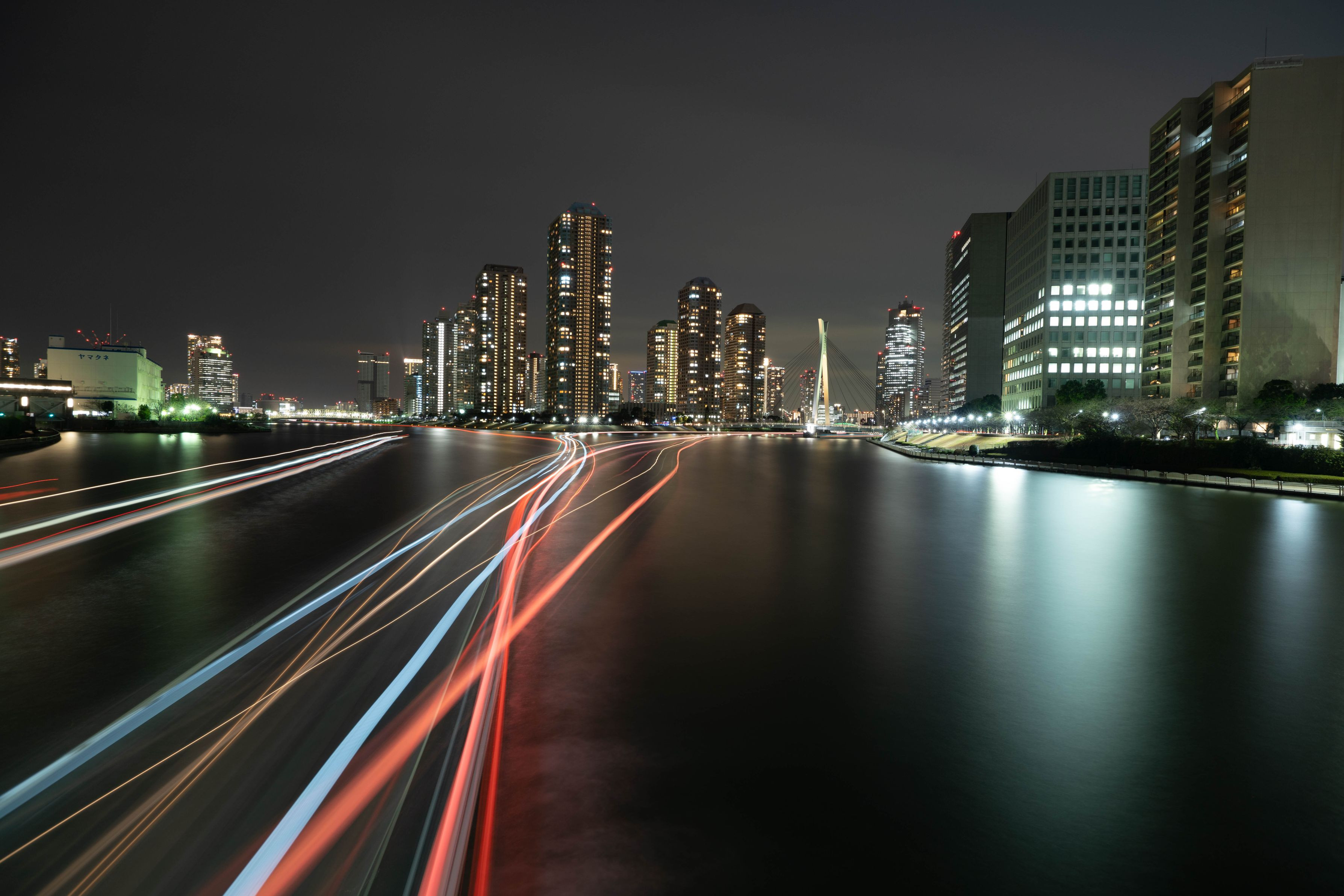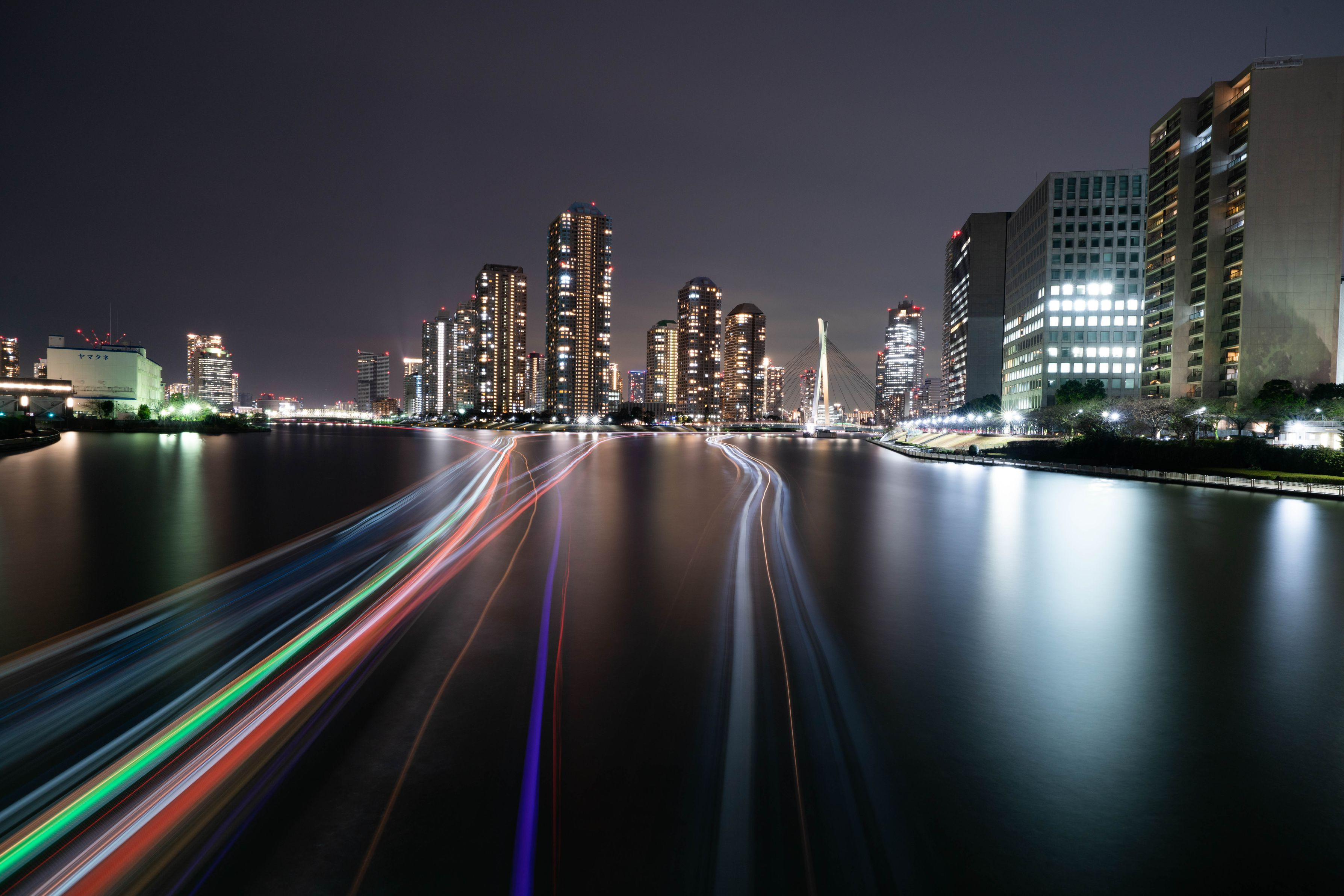 製品情報>My Sony>αcafe>高層マンションの灯りと屋形船の光跡(Bayさん)