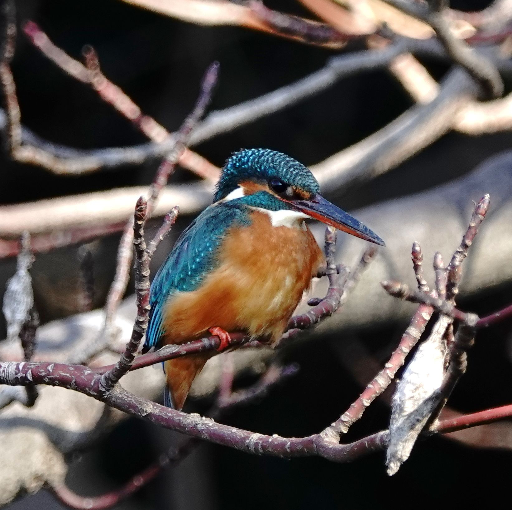 今日の神奈川は、北風のせいで日差しは暖かいのに影は寒く手がかじかむひでした。 カワセミも、池のザリガニを食べては奥に隠れる繰り返しで、飛び物は殆どチャンスが有りませんでした。