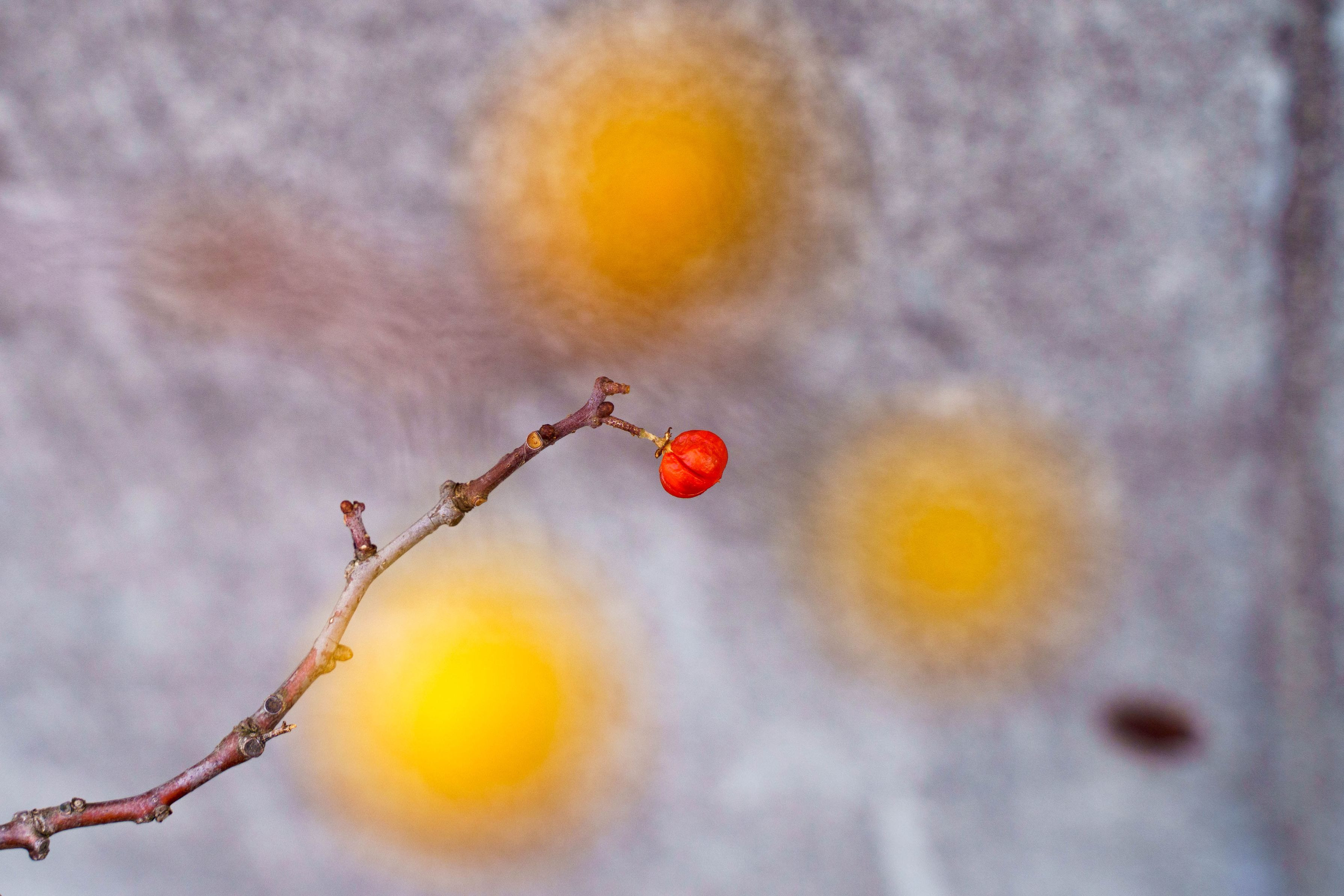 2018年秋に撮りました。 コンクリートの壁に垂れる枝の木の実を前ボケでも入れつつ。