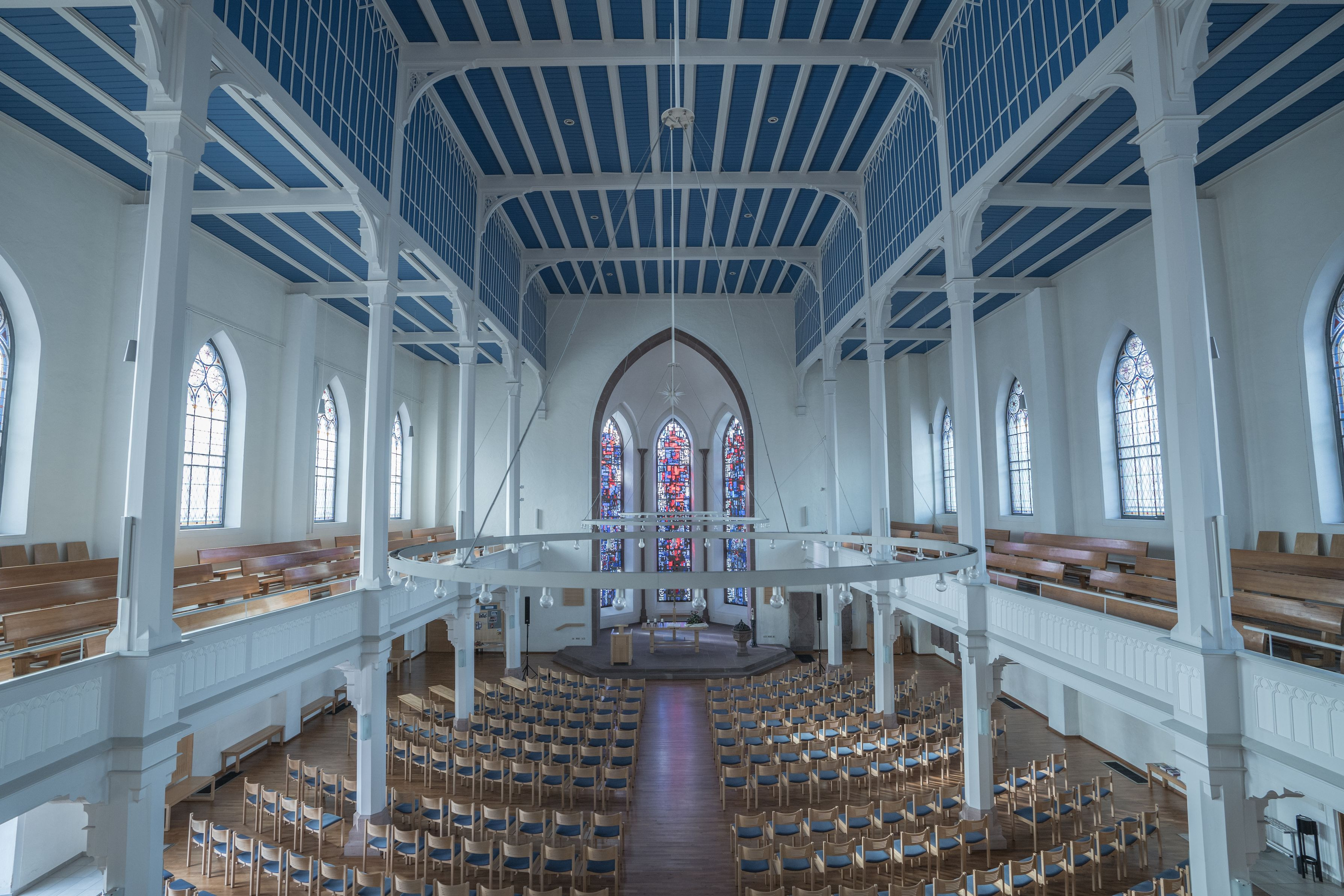 Schwarzwaldbahn(黒い森鉄道)の旅で途中下車した St. Georgenという街の福音教会。 調べてみるとプロテスタントの教会だそうで、 シンプルですが凛とした雰囲気でした。