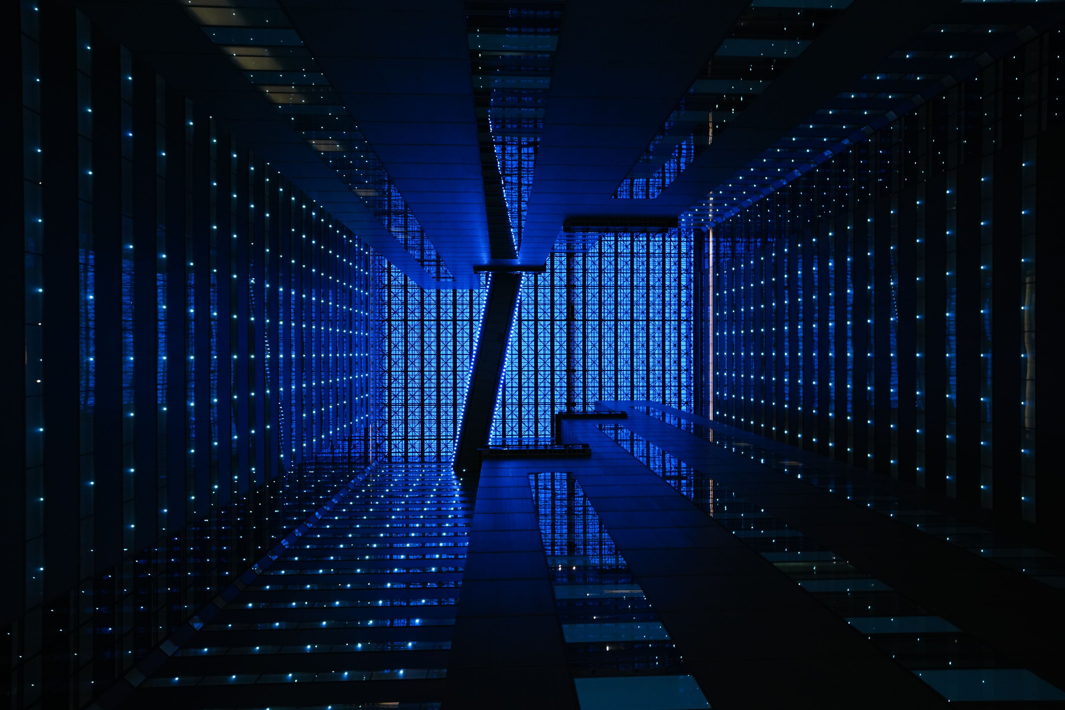 新宿NSビルの吹抜けを日が落ちてから撮影しました。 イルミネーションがまるで星のように見えました。