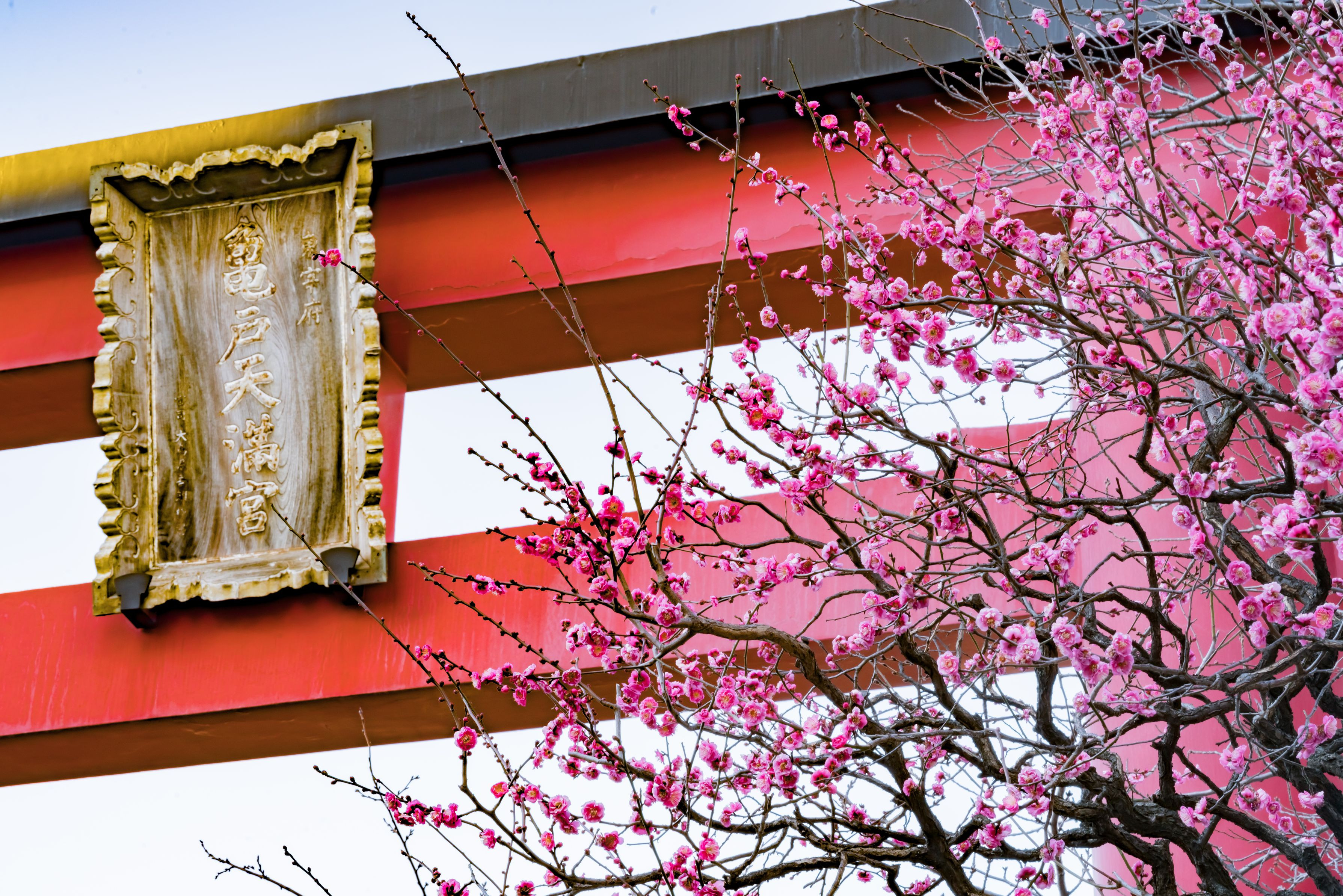 製品情報>My Sony>αcafe>亀戸天神社 鳥居と紅梅(めかにかさん)