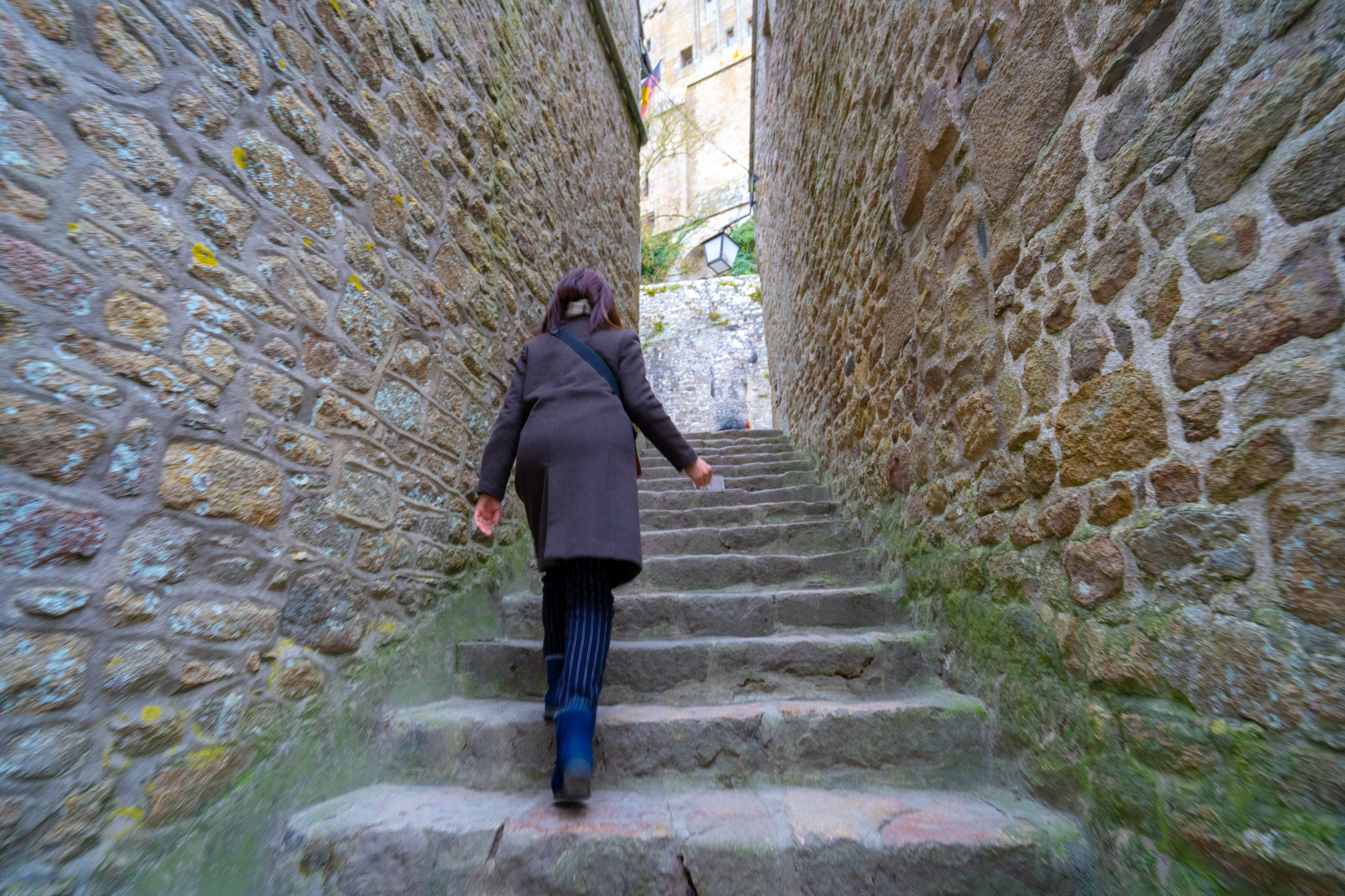 修道院を目指して石畳の階段を進みます
