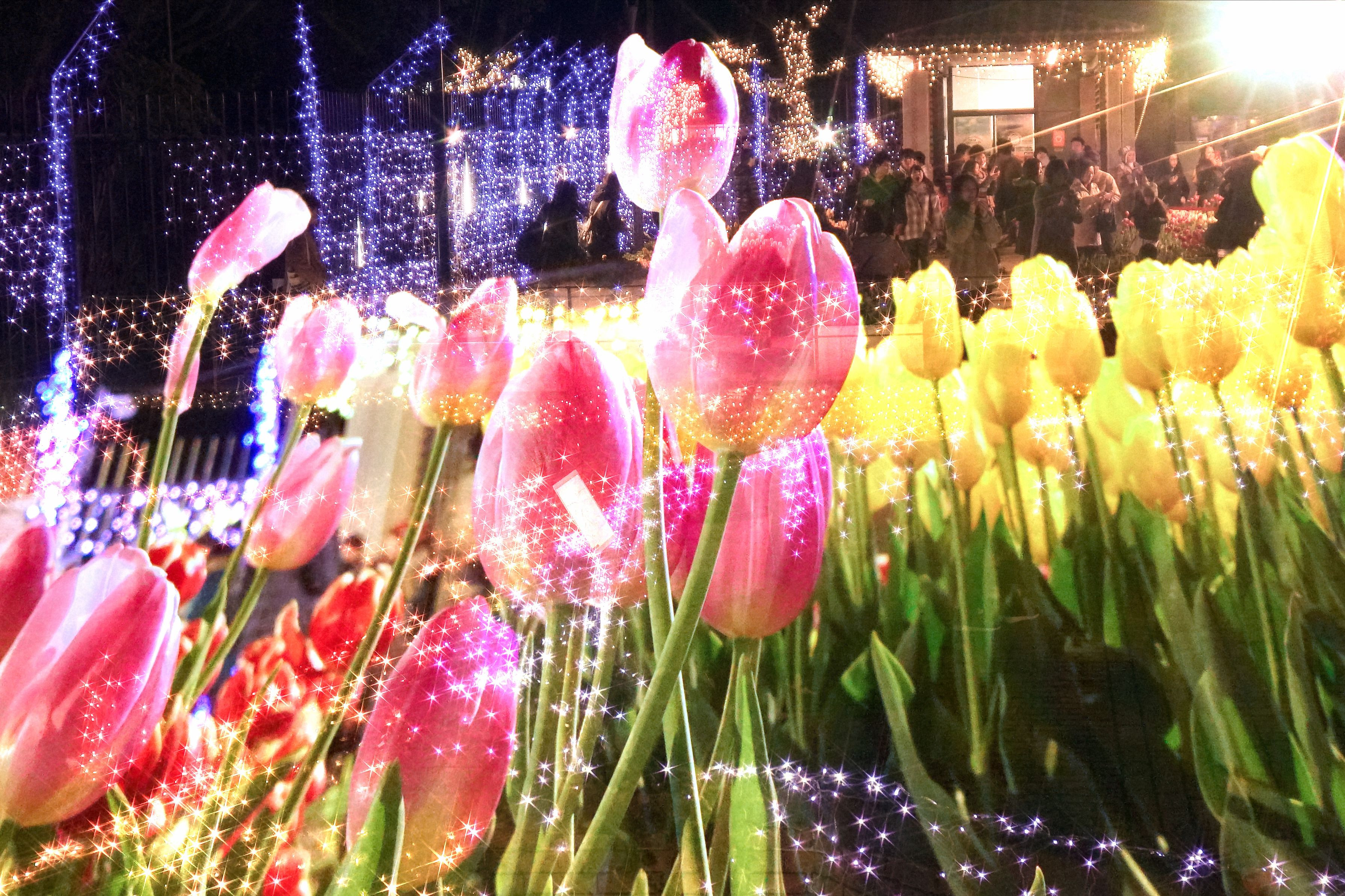 イルミのキラキラとアイスチューリップを多重露光で重ねたら、星屑がキラキラと