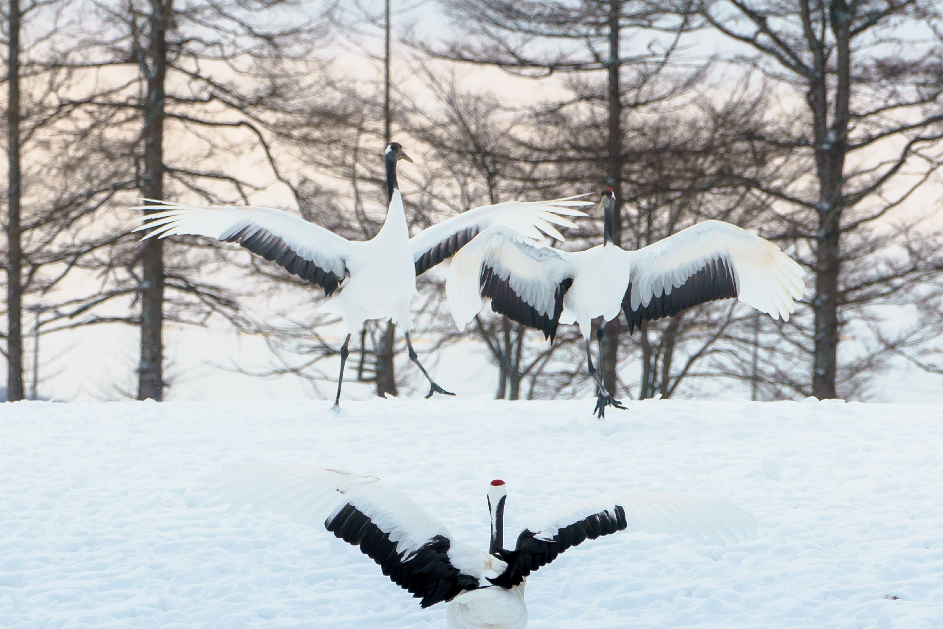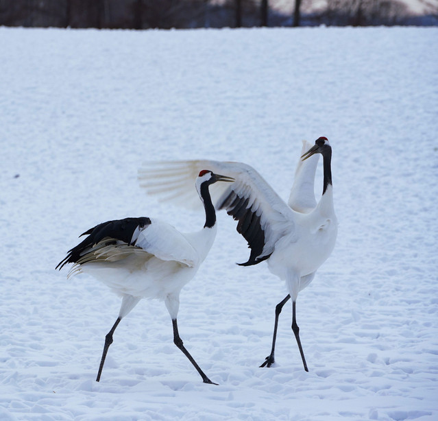 丹頂鶴の求愛ダンス たっぷりみせつけてもらいました