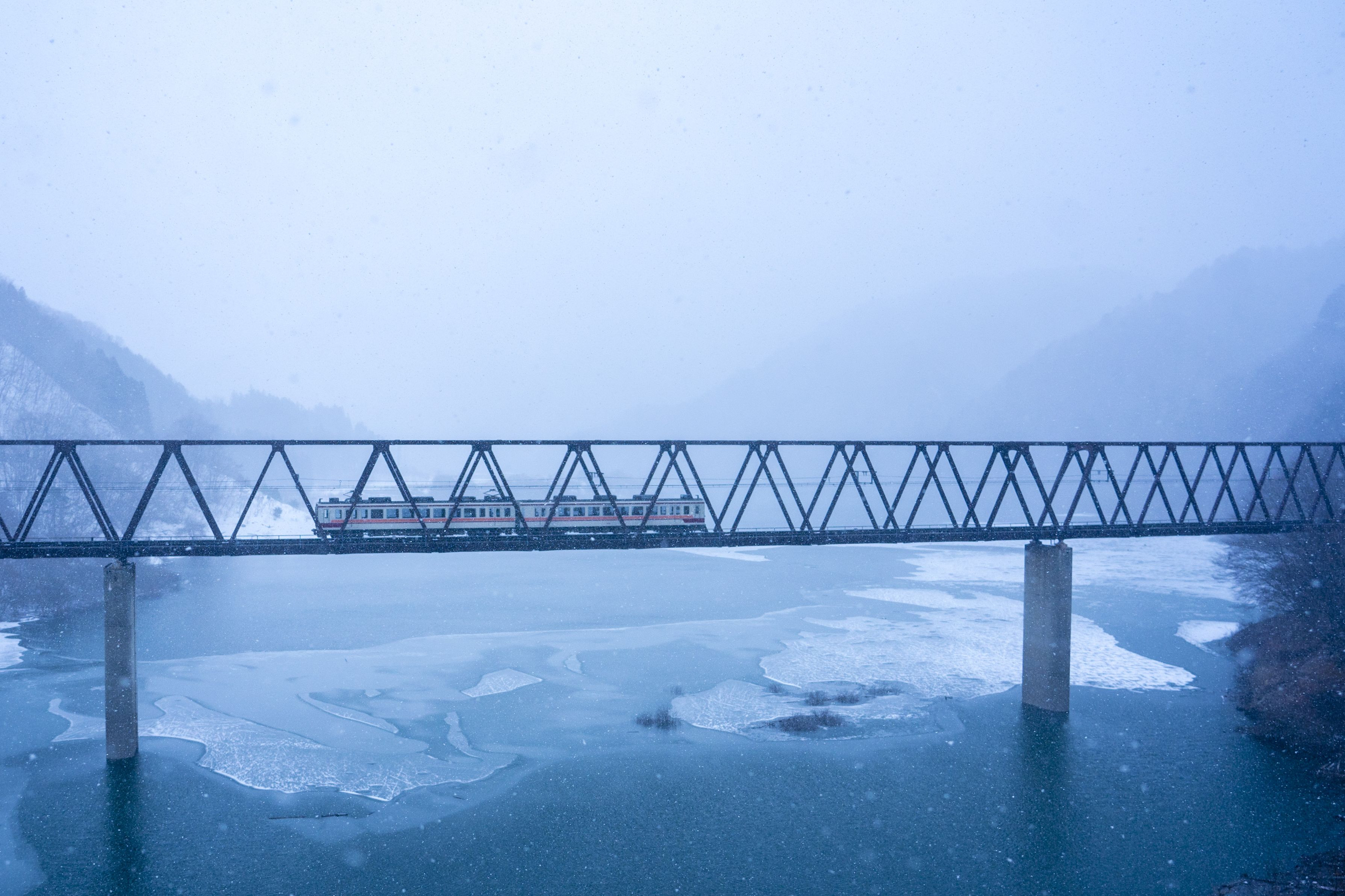 栃木県の五十里湖の上を走る野岩鉄道会津鬼怒川線。湯西川温泉のかまくら祭に行く途中で撮影しました。