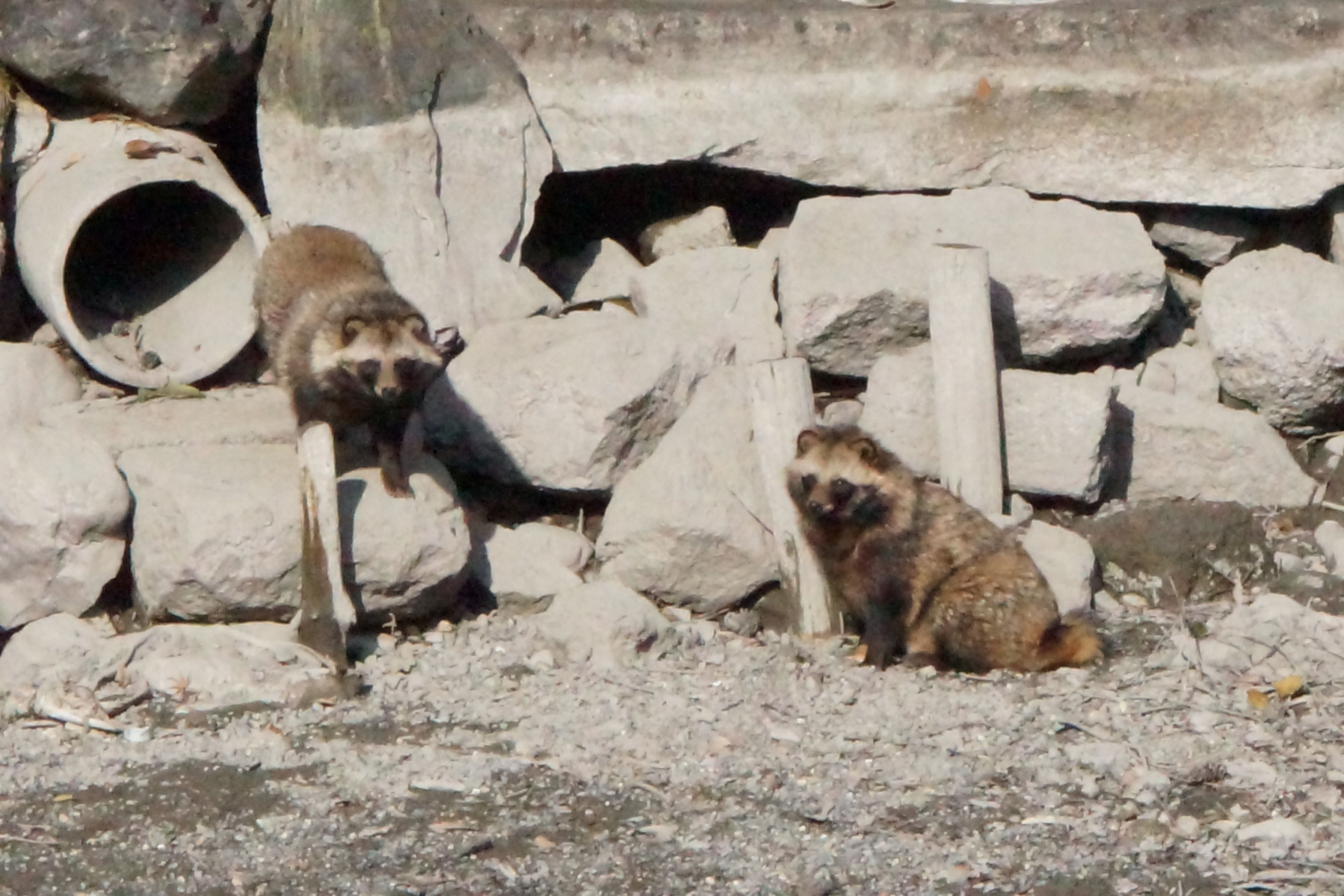 京都御苑の九条池で二匹の狸に出会う