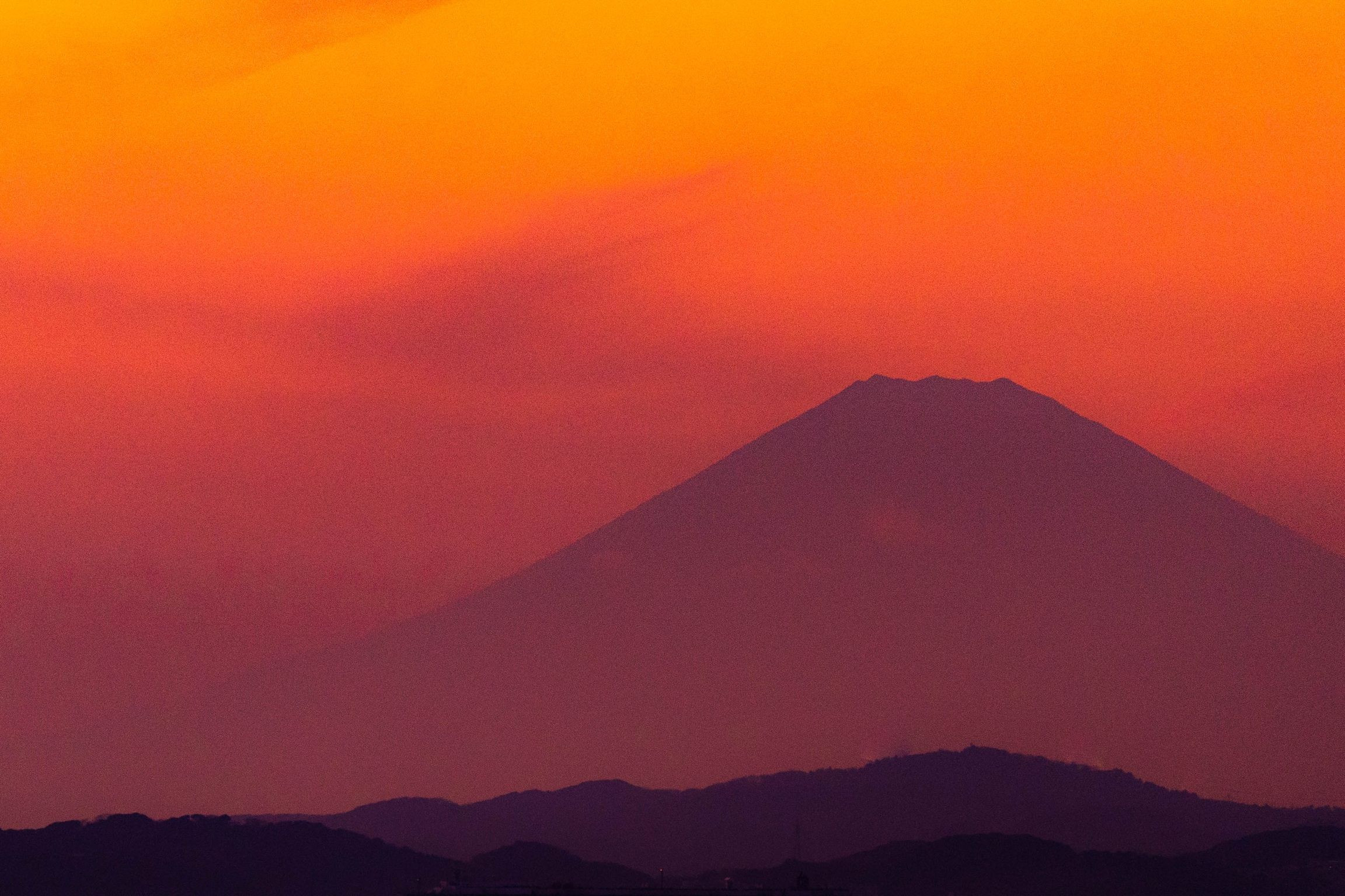 夕暮れに映る富士山