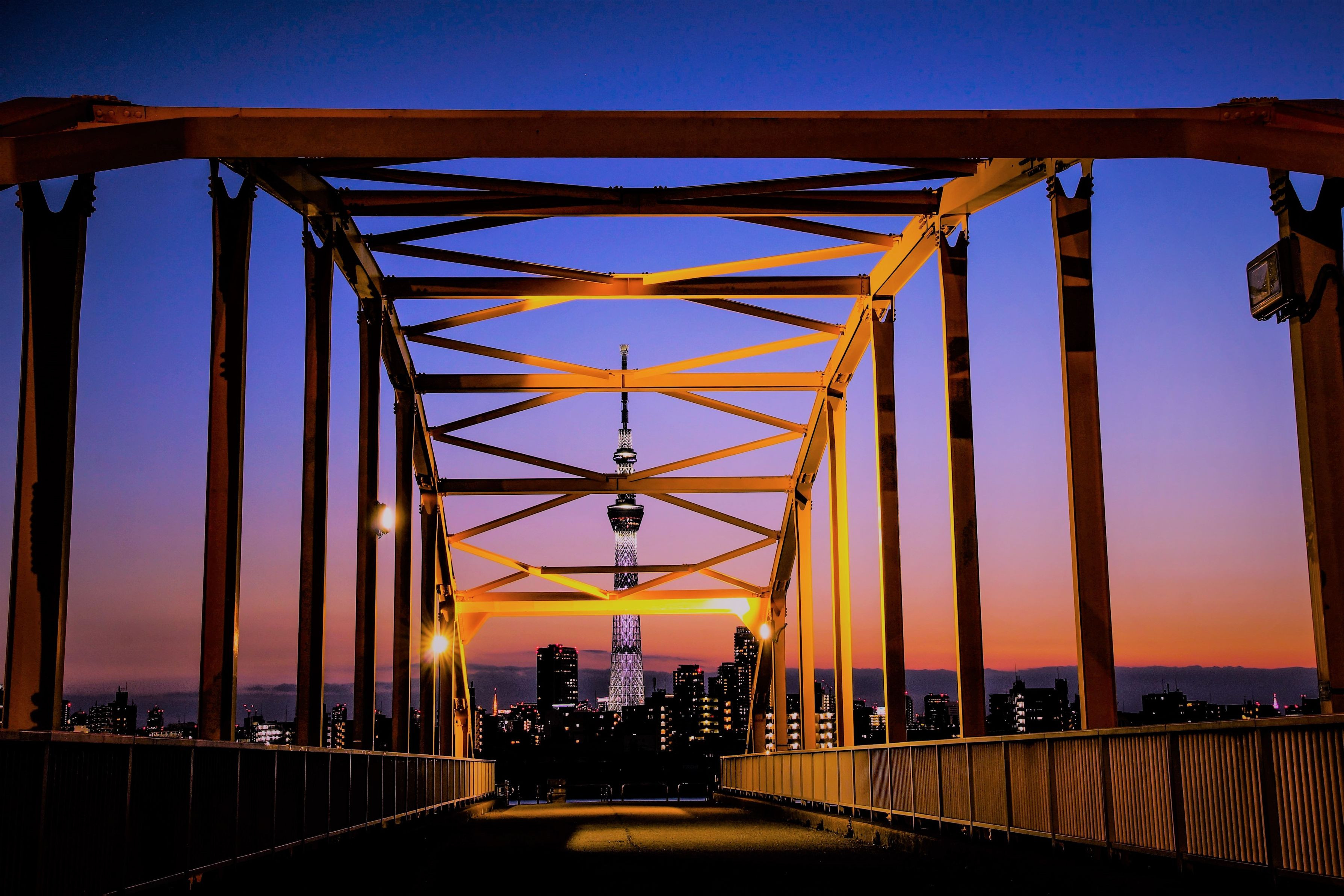 橋の向こうに東京スカイツリーと東京タワー(極小)が入るのでガシャ!