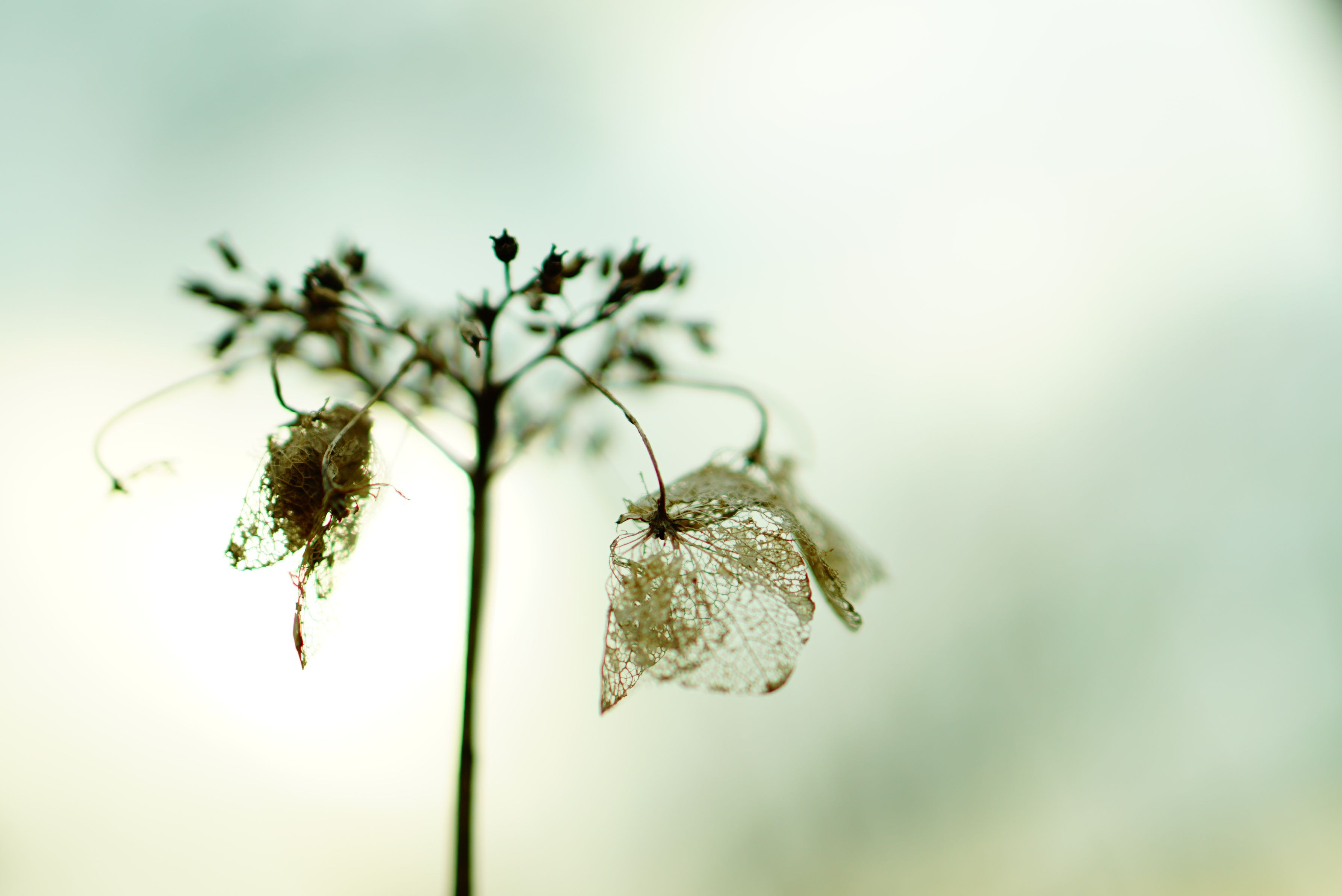 枯れ紫陽花 カメラを始めるまでは、枯れた紫陽花など 目もくれなかったのに… 今では枯れたその姿に魅せられて 見つける度についシャッターを切りたくなります。 お写ん歩で出会った日の一枚です。