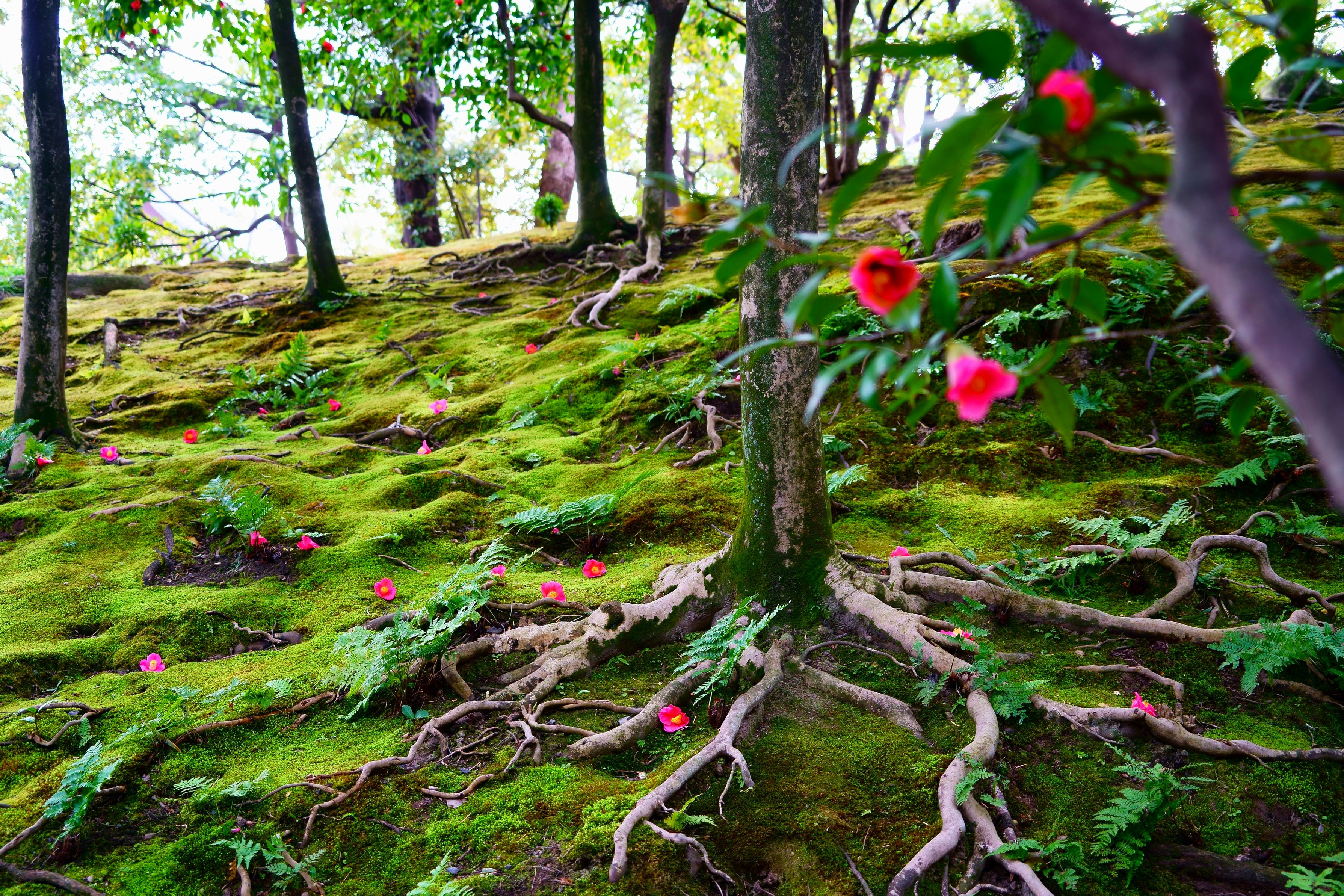 城南宮枝垂れ梅が満開になりました。今年はその中でも椿の存在感ありです。