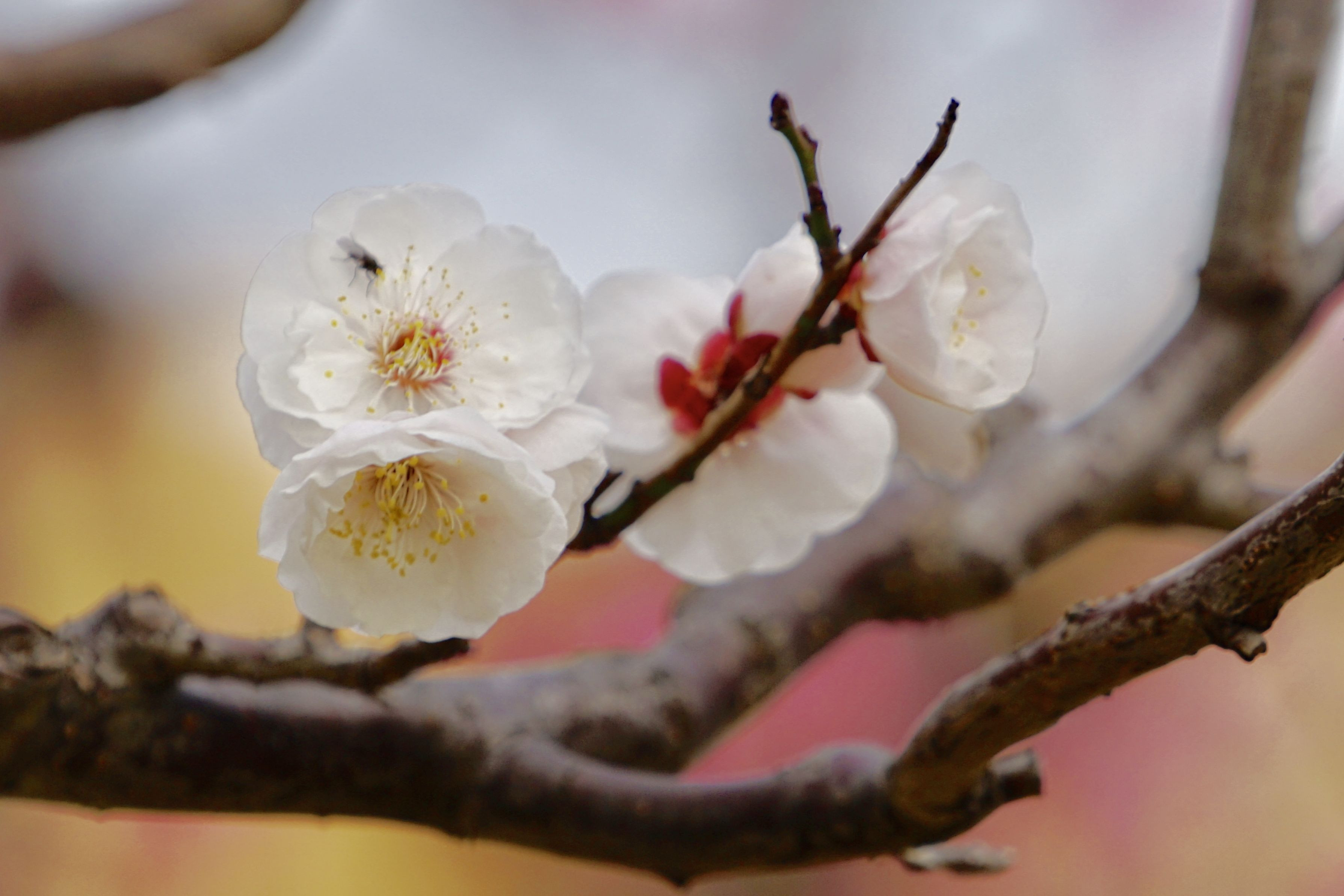 あらあら、こんなところに、こんな虫さんが。これもまた一興、素敵な白梅の、ちょっと稀なる愛らしさ。