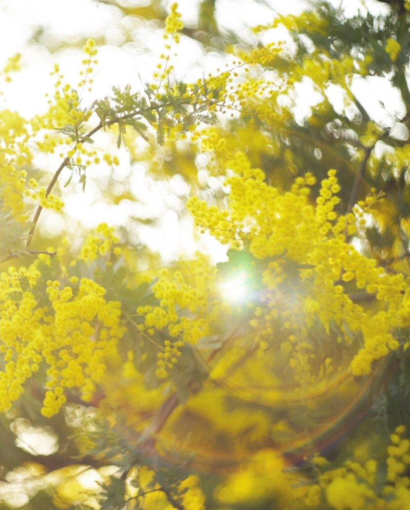 ミモザが光に包まれているところです。