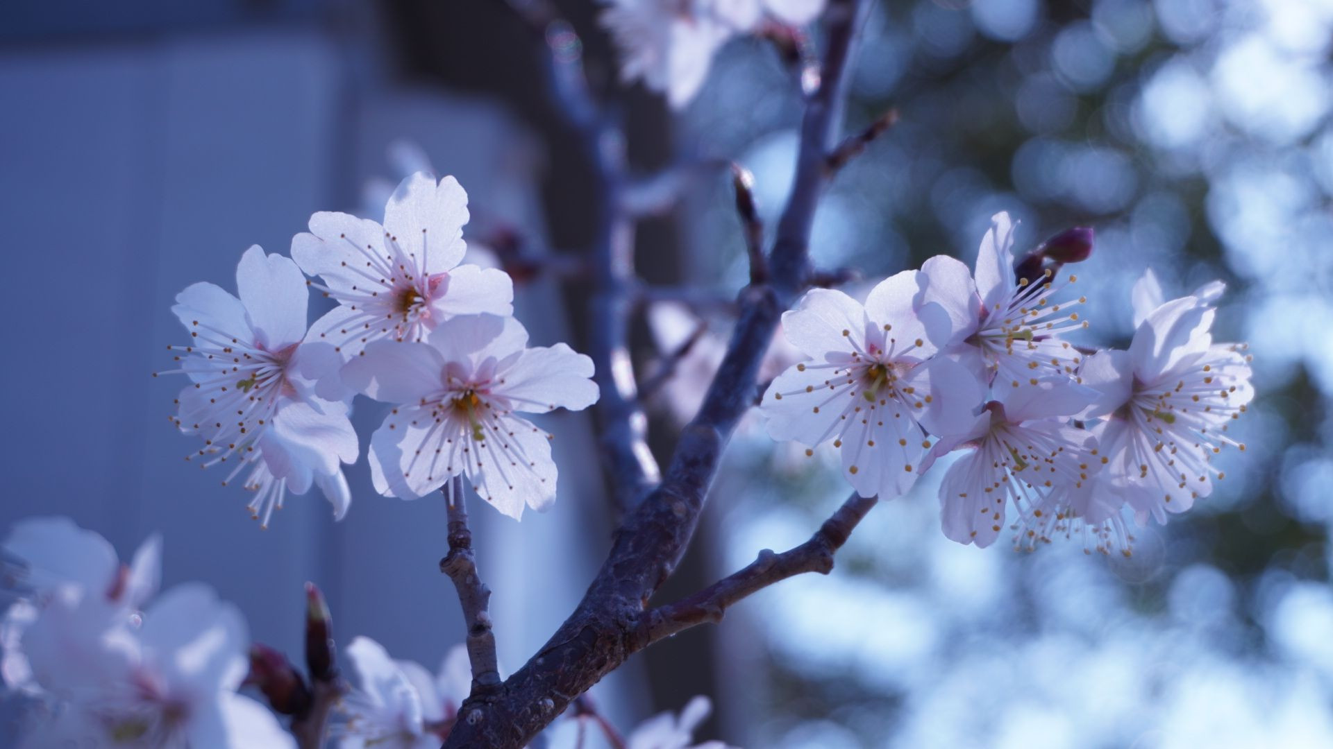 名前がわからないけれど、桜だよね? 太陽が透けていて綺麗、 でもまだ肌寒い感じを出したくて青っぽく。