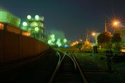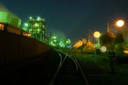 雨降る工場夜景