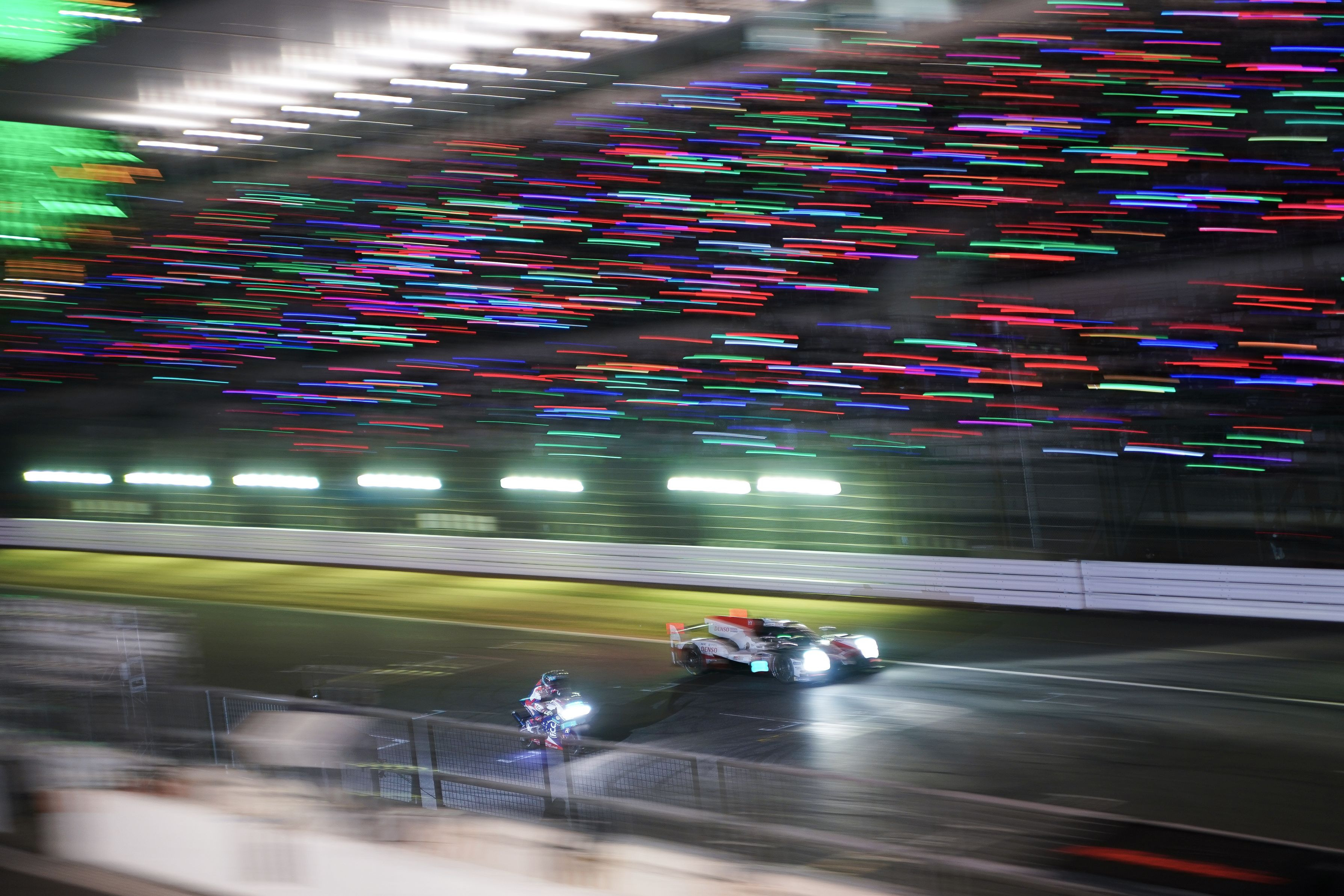 4輪で優勝のトヨタTS05と。2輪で優勝のCBR1000RRが並んでナイトラン。 鈴鹿モタスポフェス。 MotoGPのマシンにホンダ八郷社長。 WRCのヤリスをドリフトさせて、豊田章男社長が登場。 この二人すごいな。