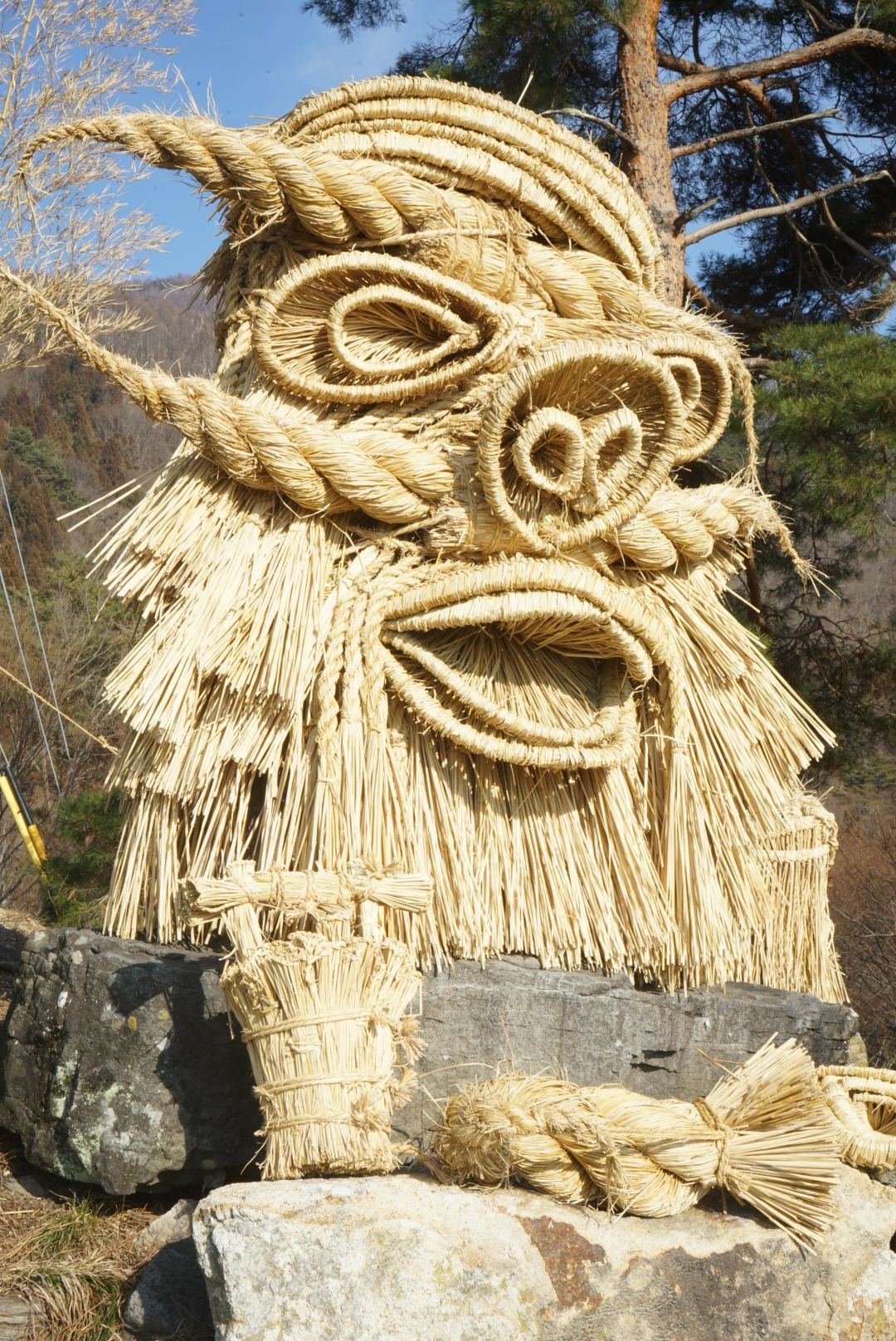 藁細工を道祖神に着け無病息災を祈る