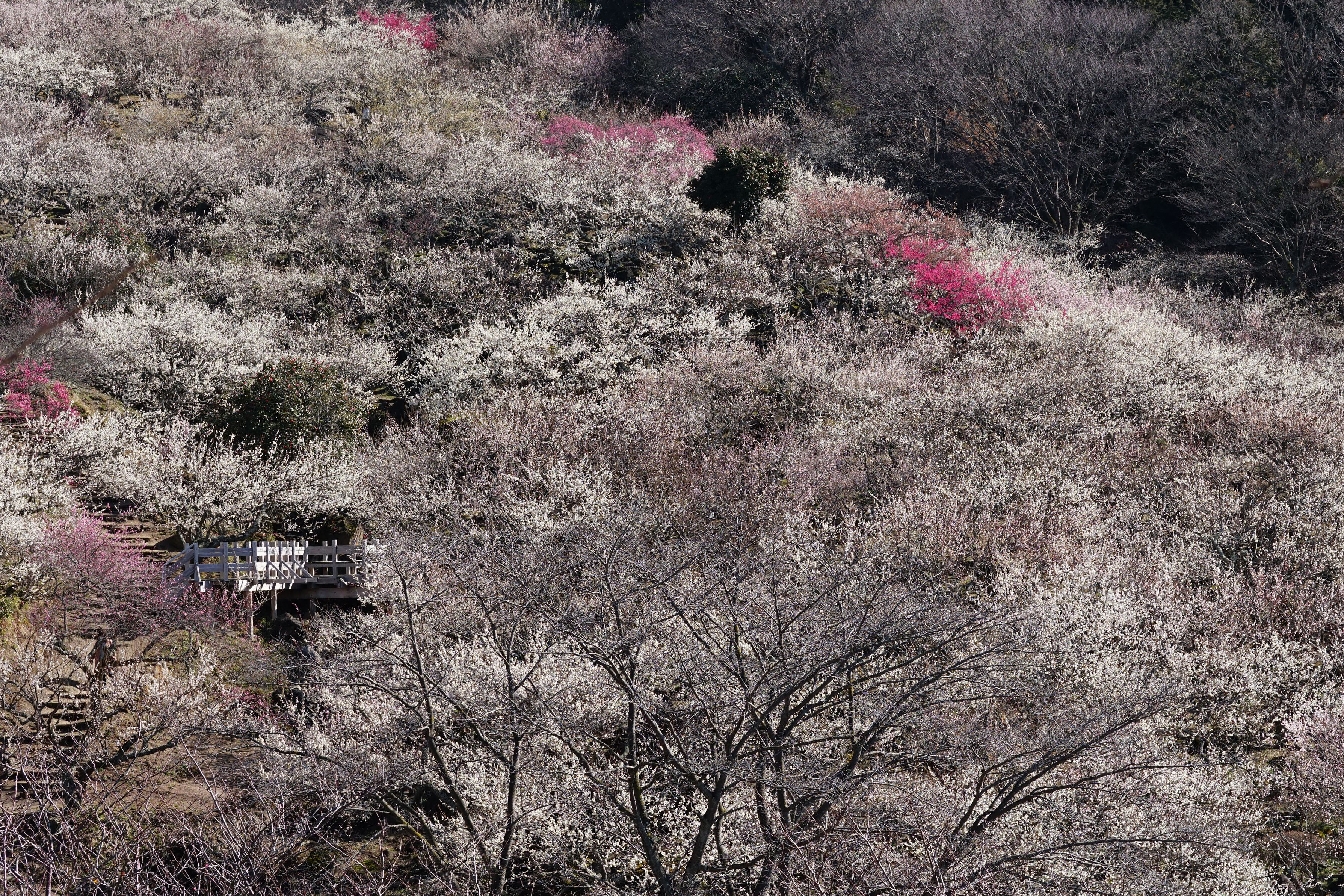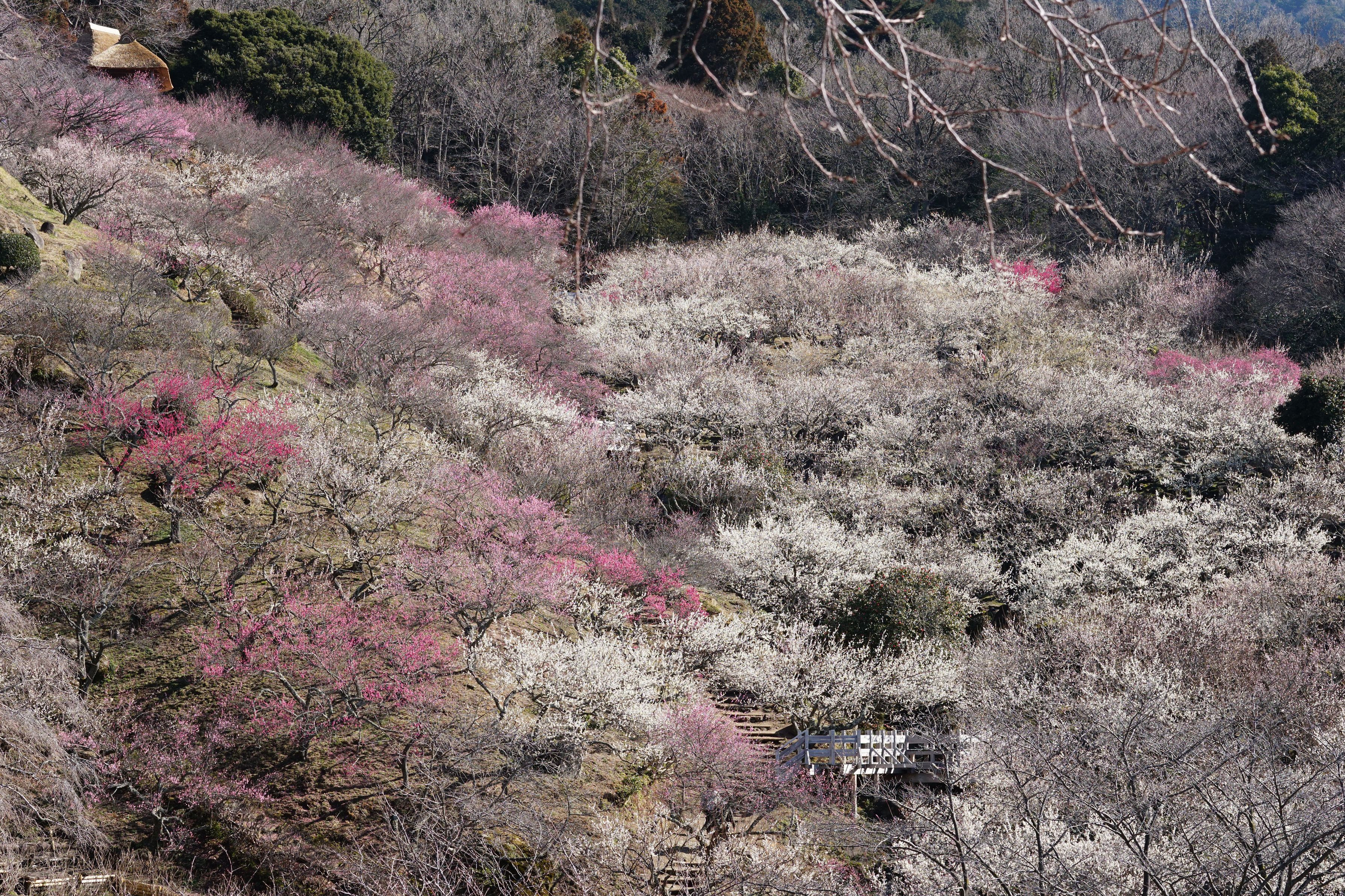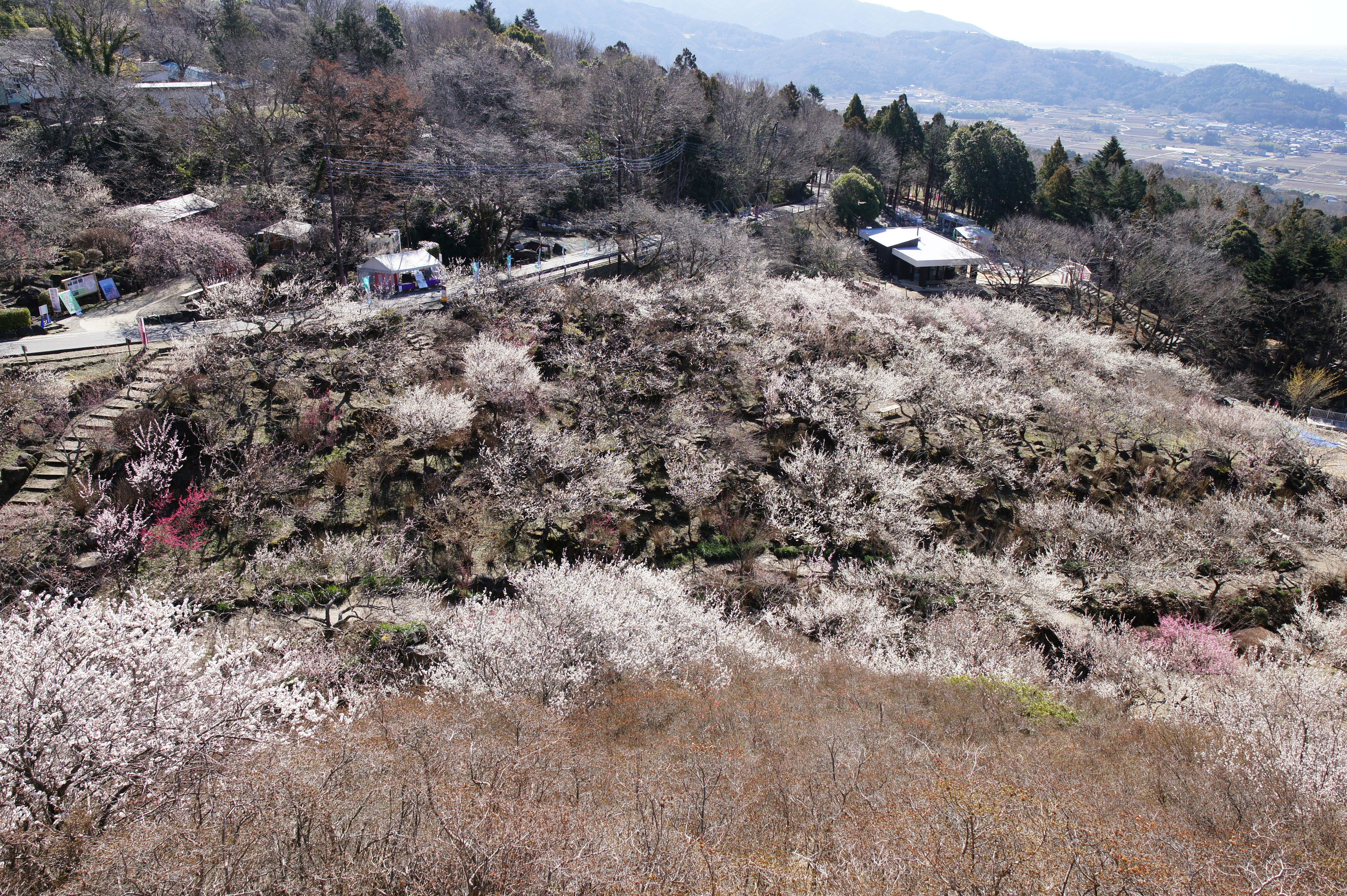 四阿からの筑波梅林の全貌です。 新にできた四阿から撮影しました。