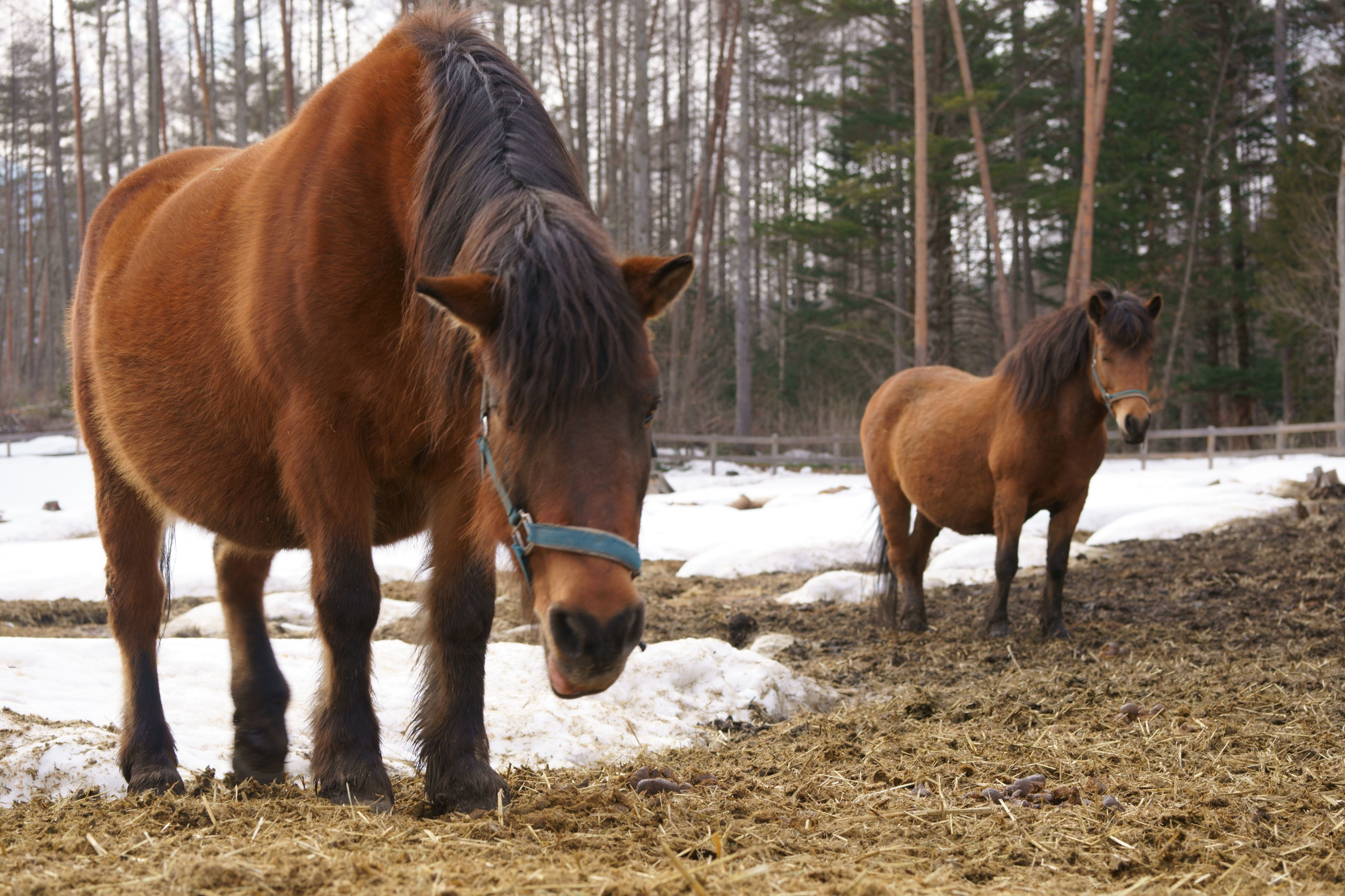 寒さの中、元気に干し草を食べていました。