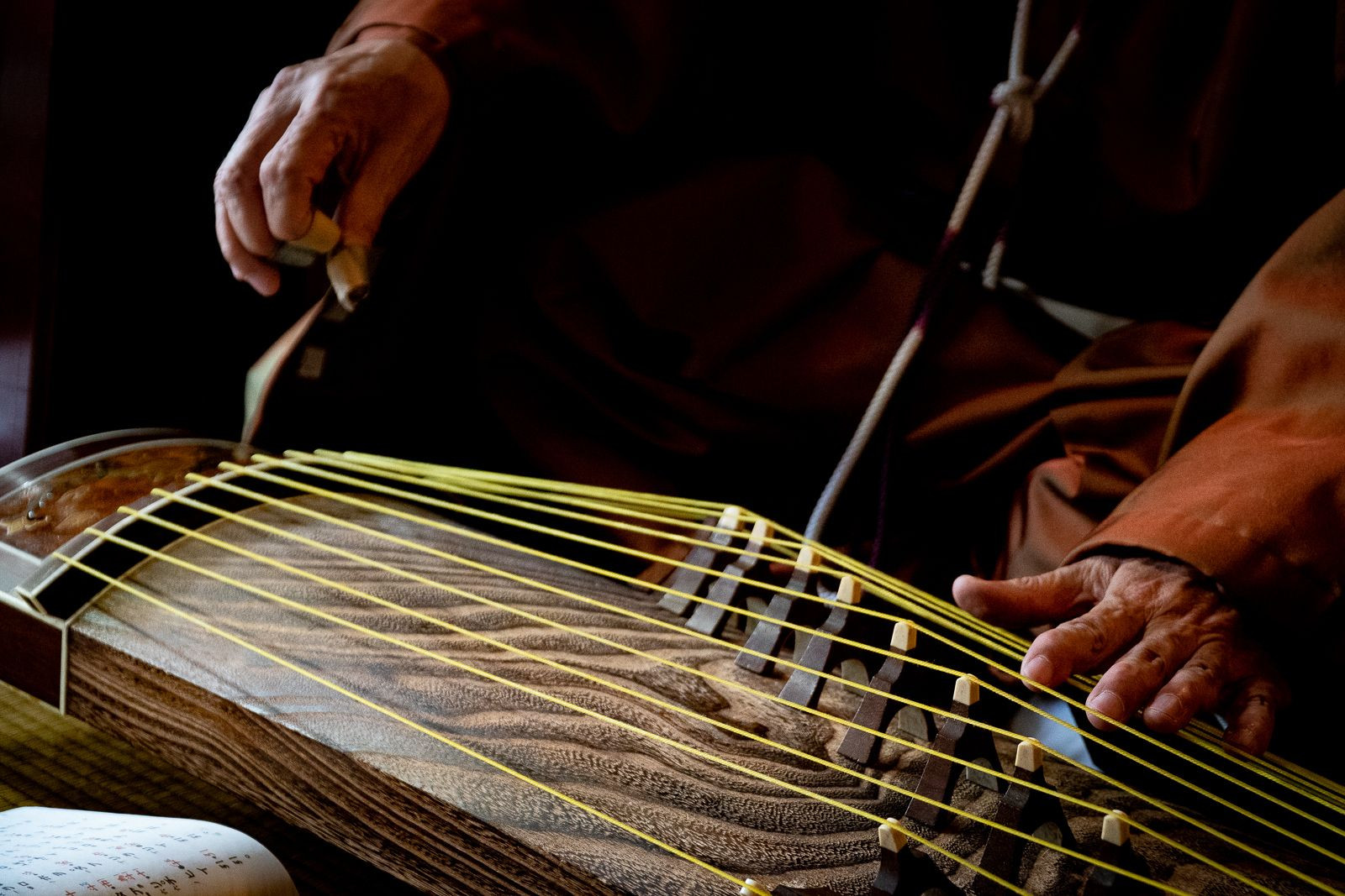 雅楽の筝です。 主役を奏者の手にするべきだったかな?