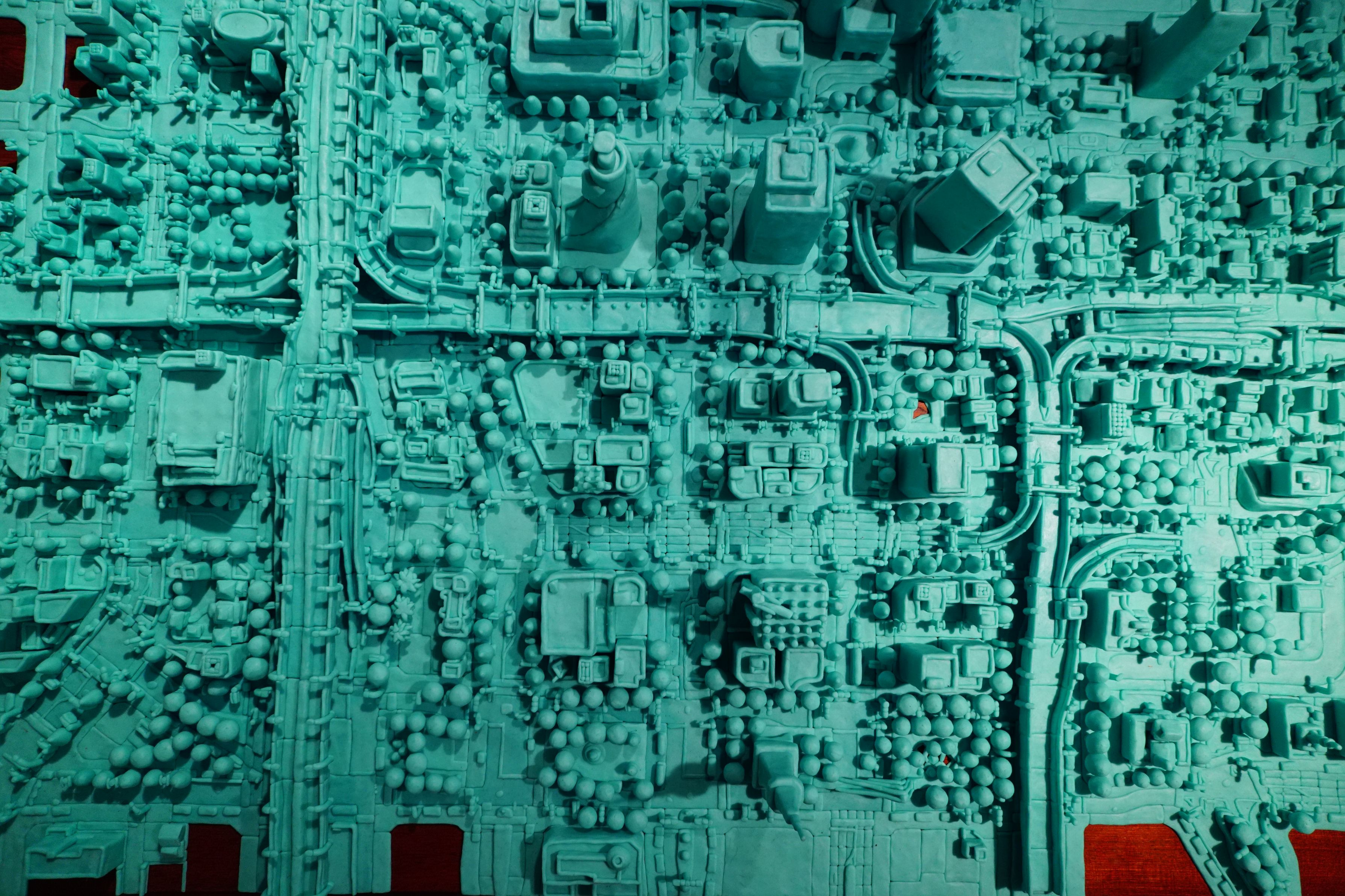 アールブリュット展にて 障害者の方が思うままに作ったアート作品です。 地図を見て、それを再現しているとのこと。 とはいえ、作った本人はアートを作ろうとは思っておらず、作ったらすぐに壊して次を作り始めるのだとか。。。