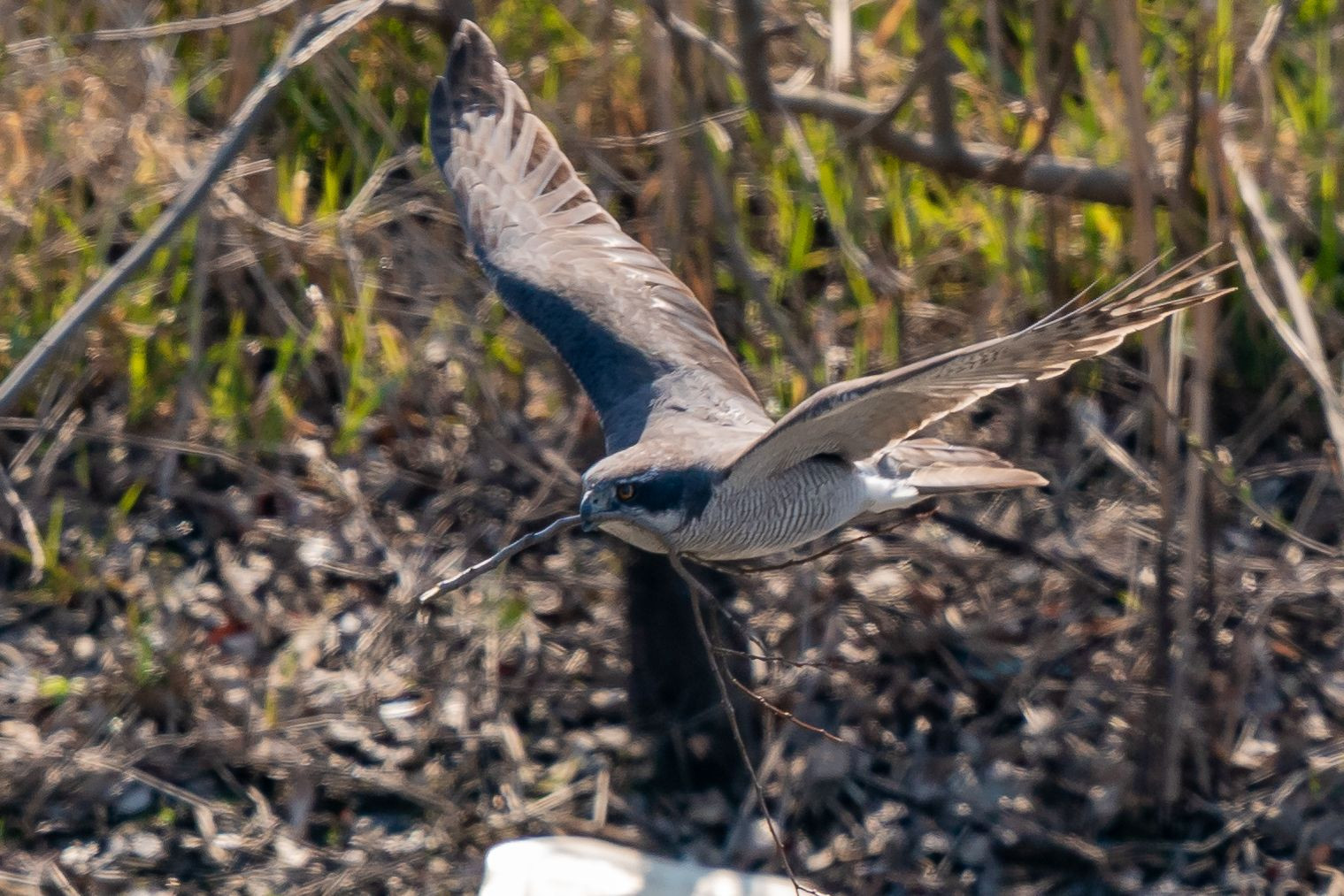 オオタカの巣作りが始まり、枝をくわえて何度も巣と藪を行ったり来たり。 #オオタカ#