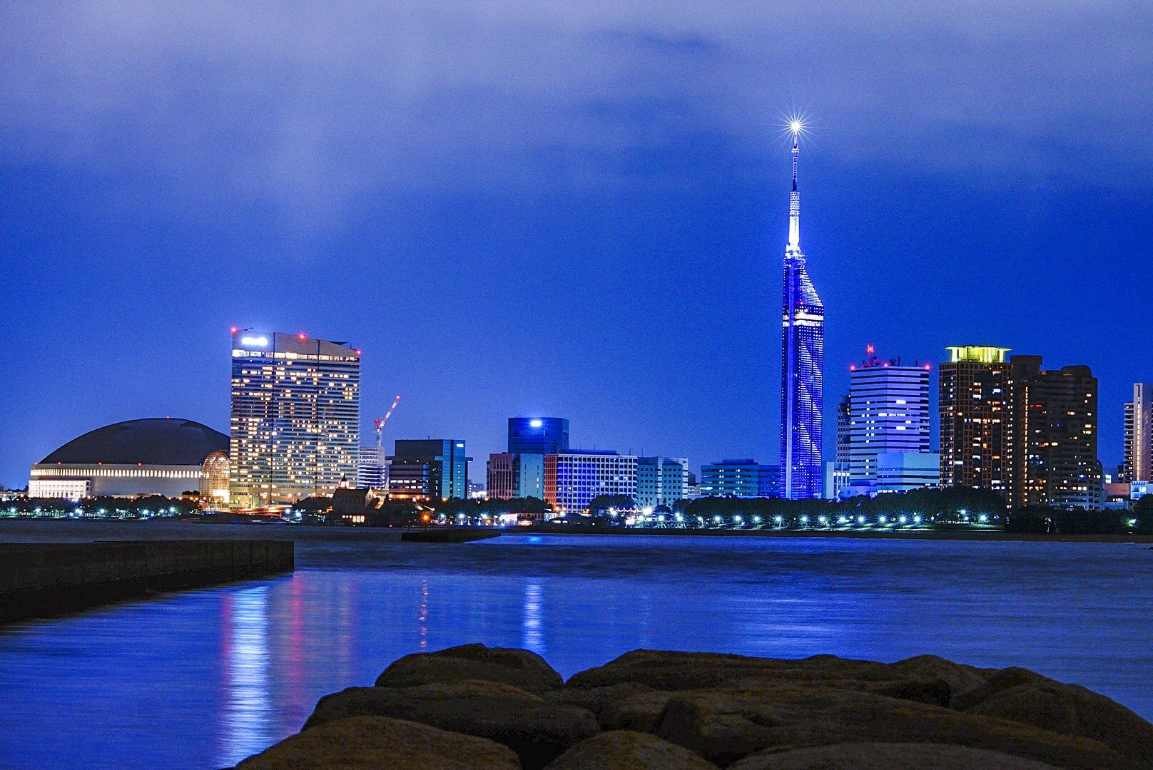 福岡タワー最後になります ここからの撮影は別構図を考えていましたが強風で波飛沫を被る程の強風で断念 堤防の切れ目は風による影響でリフレも切れる程でした