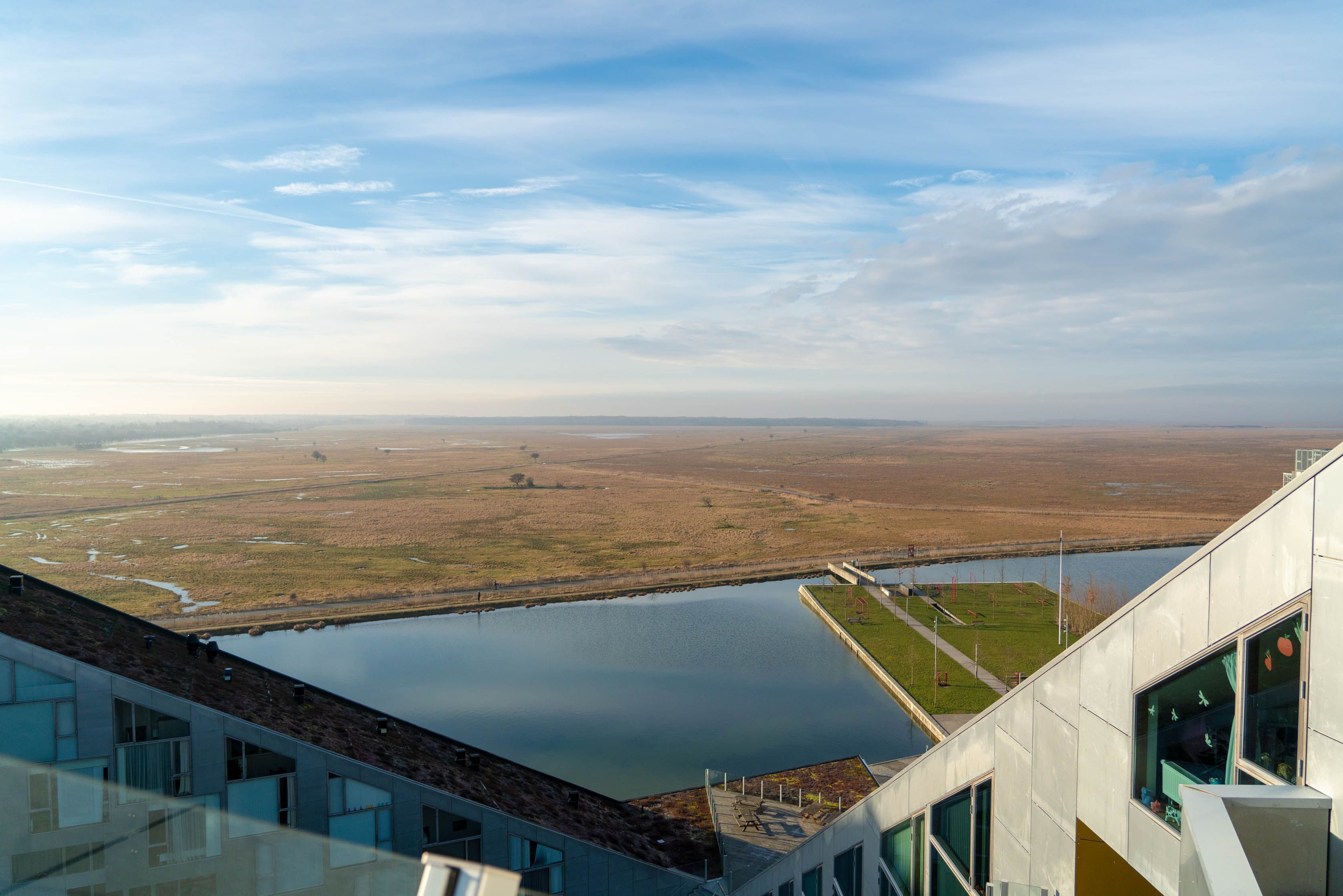 建築家 ビャルケさんの8Houseから撮影しました。8Houseから見える、北欧の大都市コペンハーゲンにも、モダンな建築と、空と大地がかけ合わさることによって、自然と人工物との美を撮影することができました。