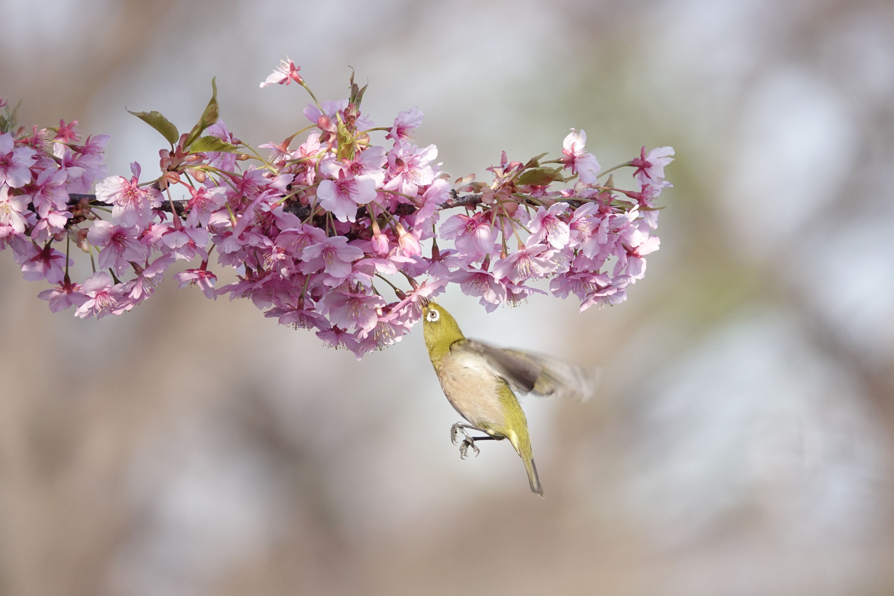 メジロがハチドリのように蜜を吸っていた!