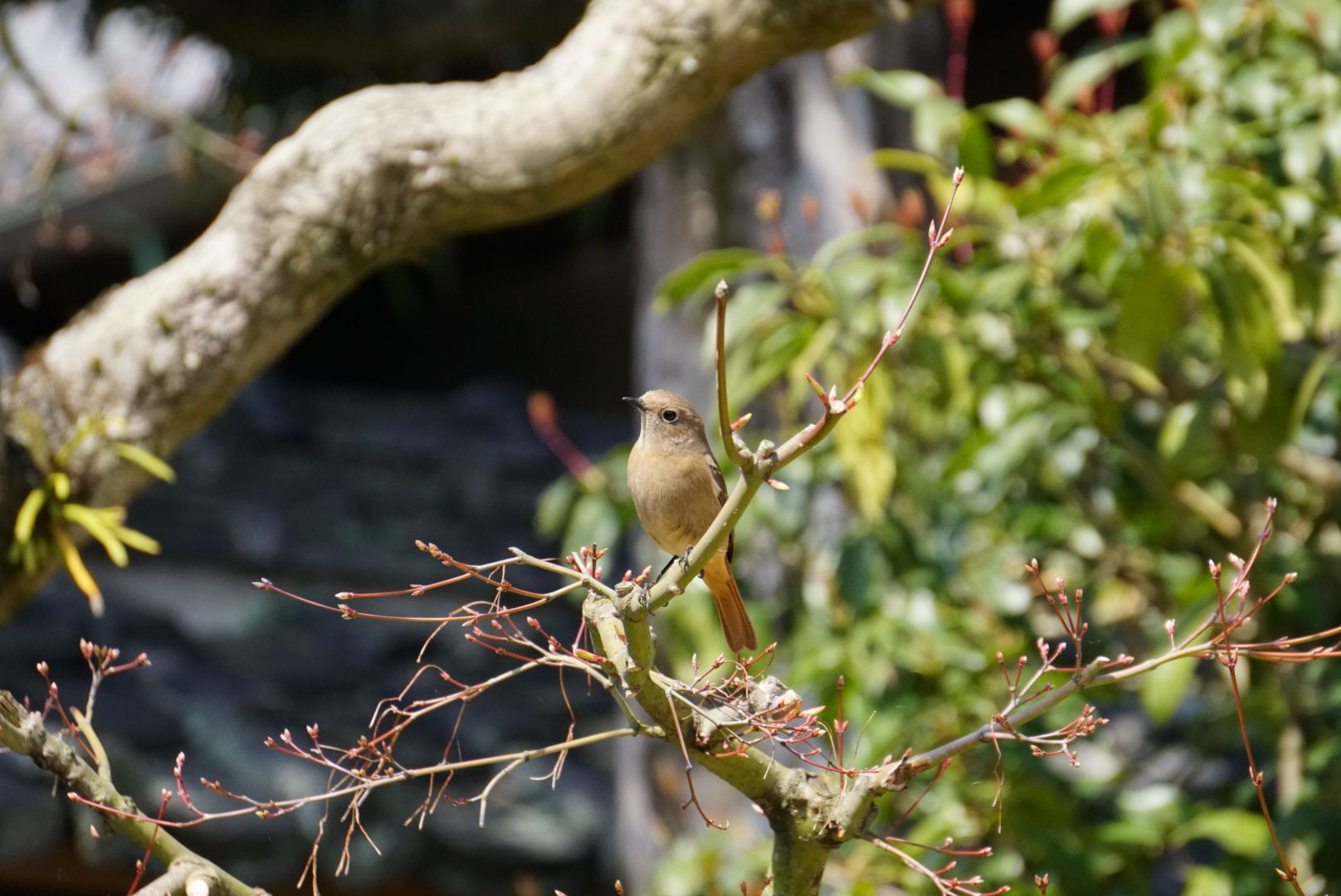伊藤伝右衛門邸のお庭で 出会った野鳥。 調べてみると、たぶんジョウビタキの雌かな? ♯ジョウビタキ♯