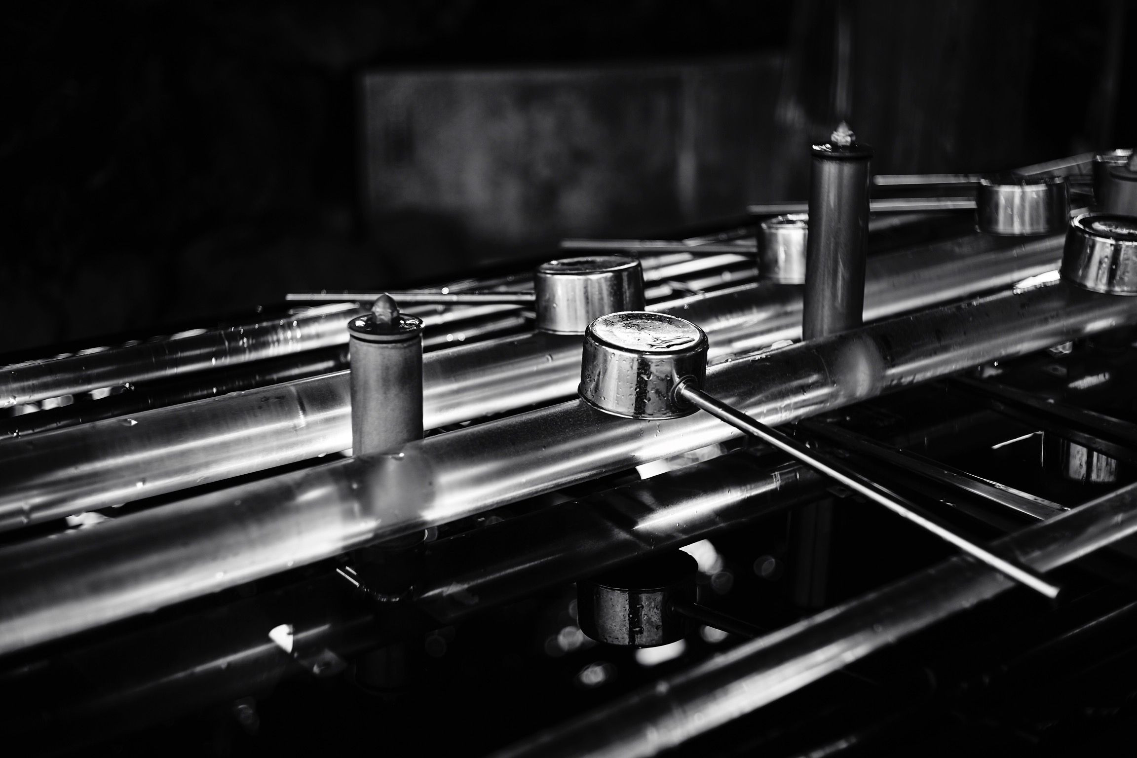 モノクロ撮影で静けさに格好良さをプラス. 水面に写り込む柄杓とボケも美しい. a7Ⅱ+NIKKOR-H.C5cm