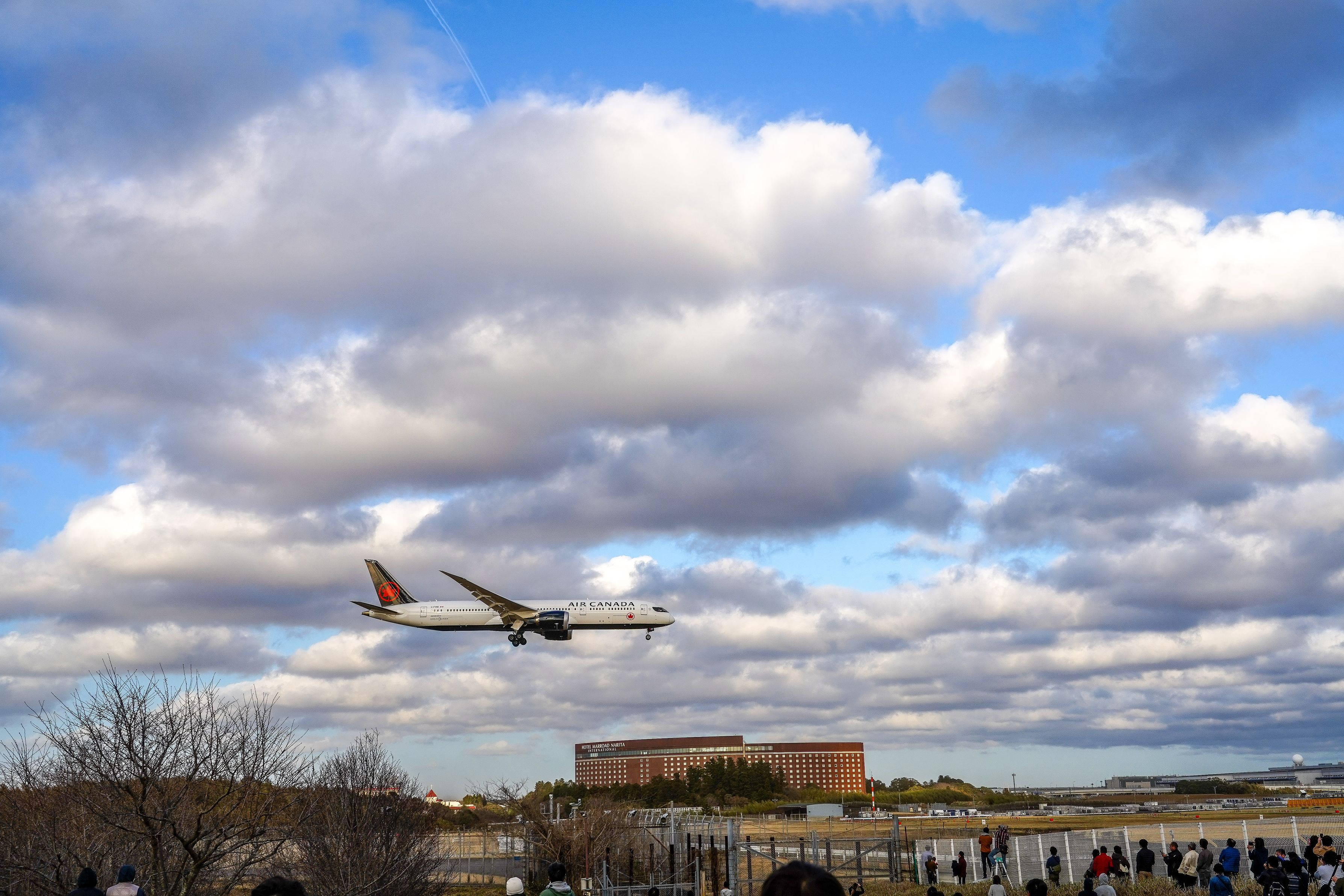 エアカナダが成田に着く頃強い風邪に流されて大きな雲が出てきました。