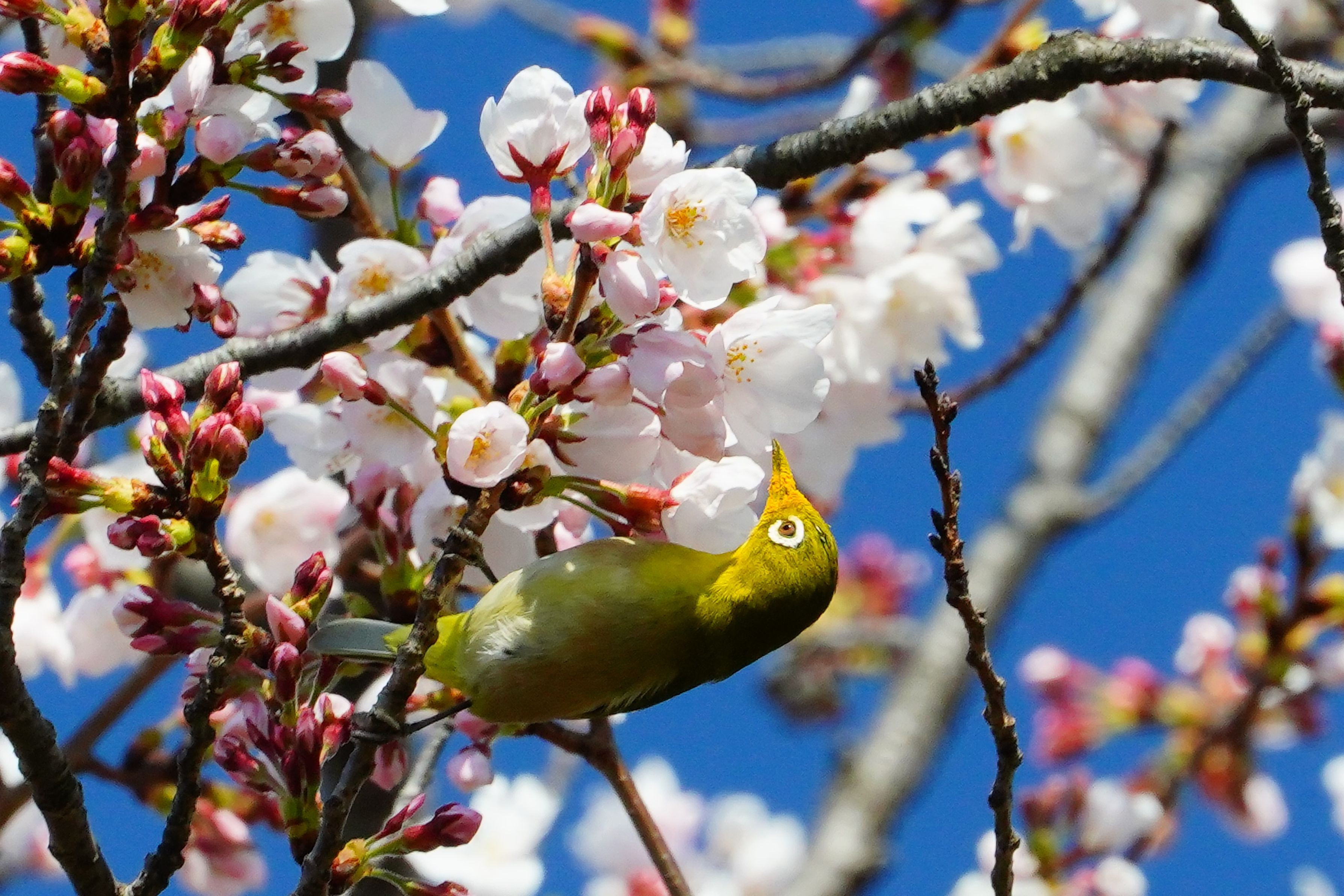 製品情報>My Sony>αcafe>桜開花、メジロ来る!(森のおじさんさん)