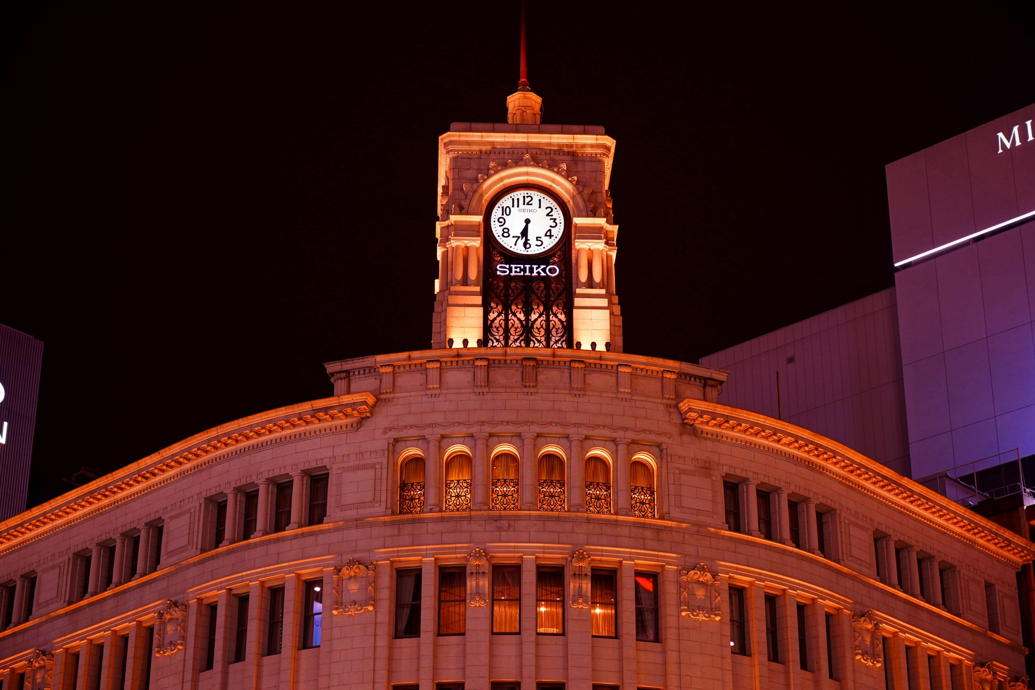 銀座の夜景もカメラに残しておこうと思い、αアカデミー講座受講後、銀座のシンボルを素朴に真正面がら撮影しました。