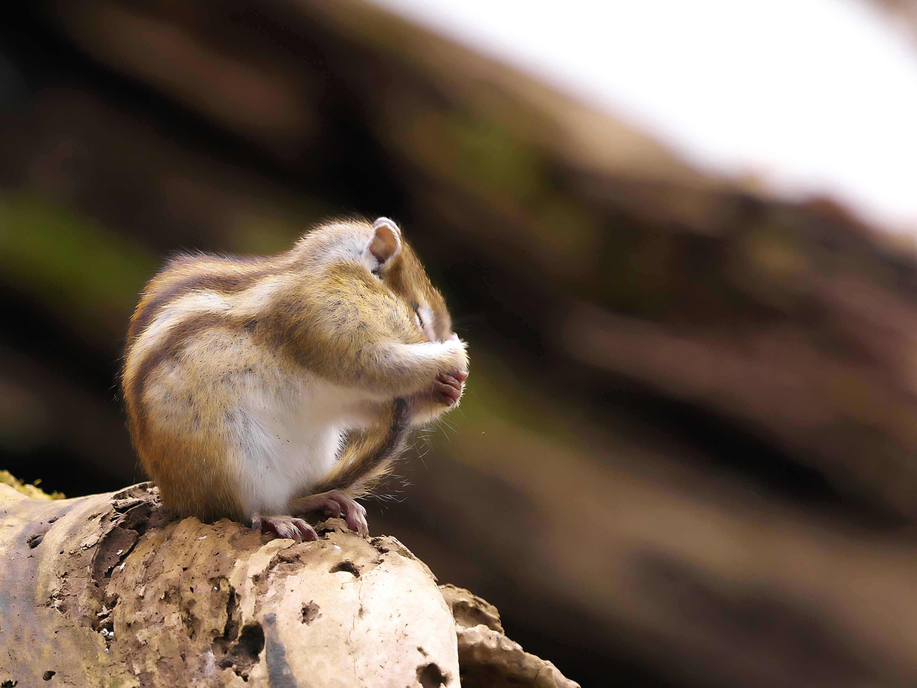 一心不乱に木の実を食べ終えた後、今度は毛繕い またねーバイバーイ