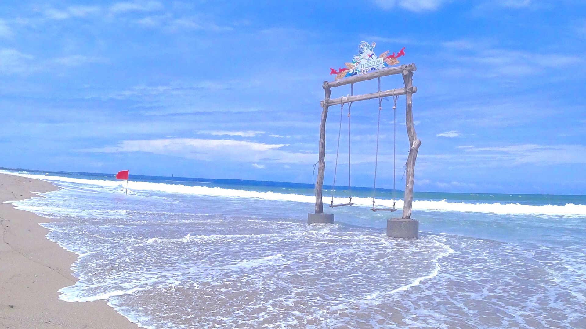 バリまた行っちゃいました。 インスタ映えちゃうビーチブランコです。 雨季で曇天なので色は加工。アクションカムでさつえい。
