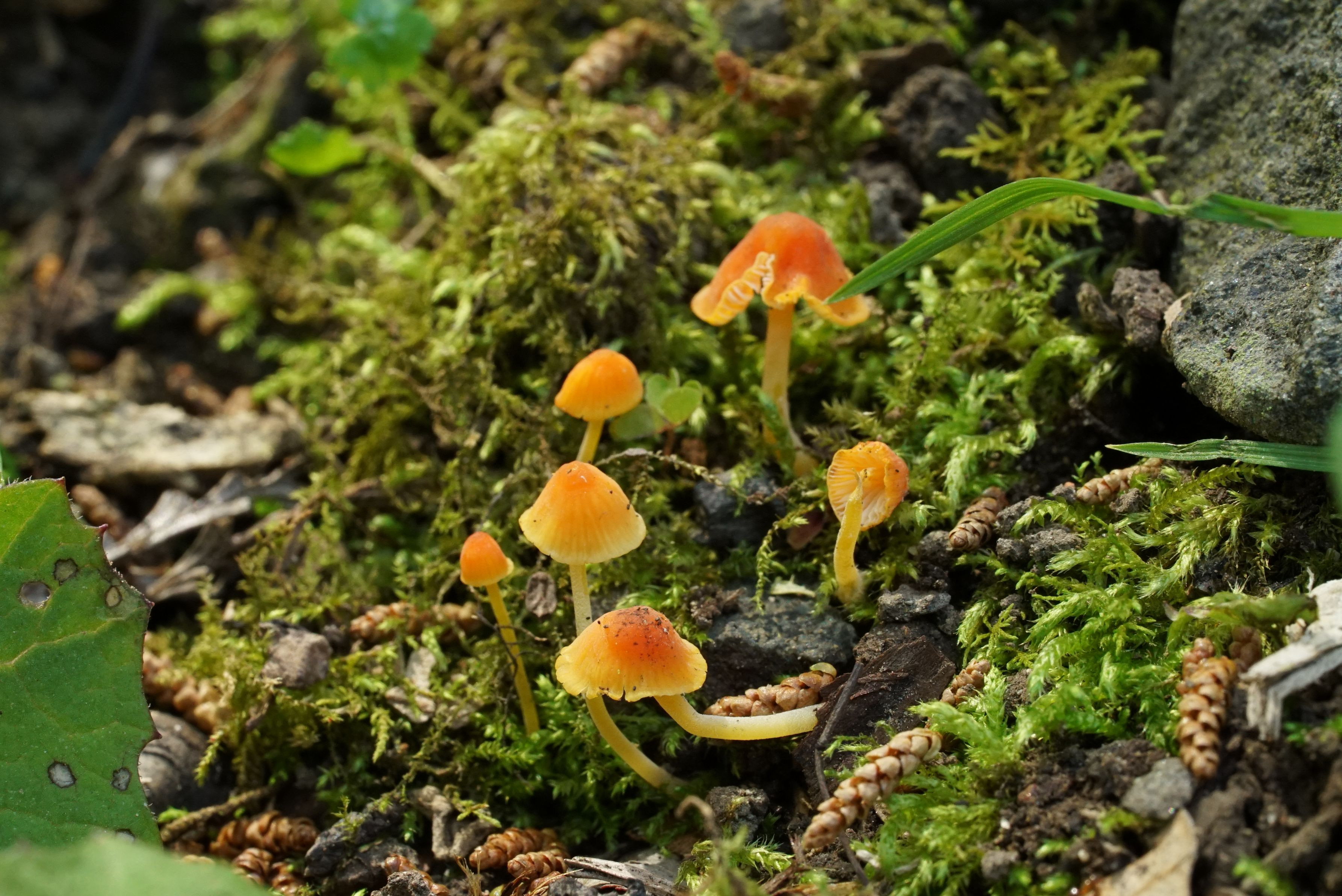 苔の中からかわいいキノコが生えていました。 残念ですが名前はわかりませんでした。