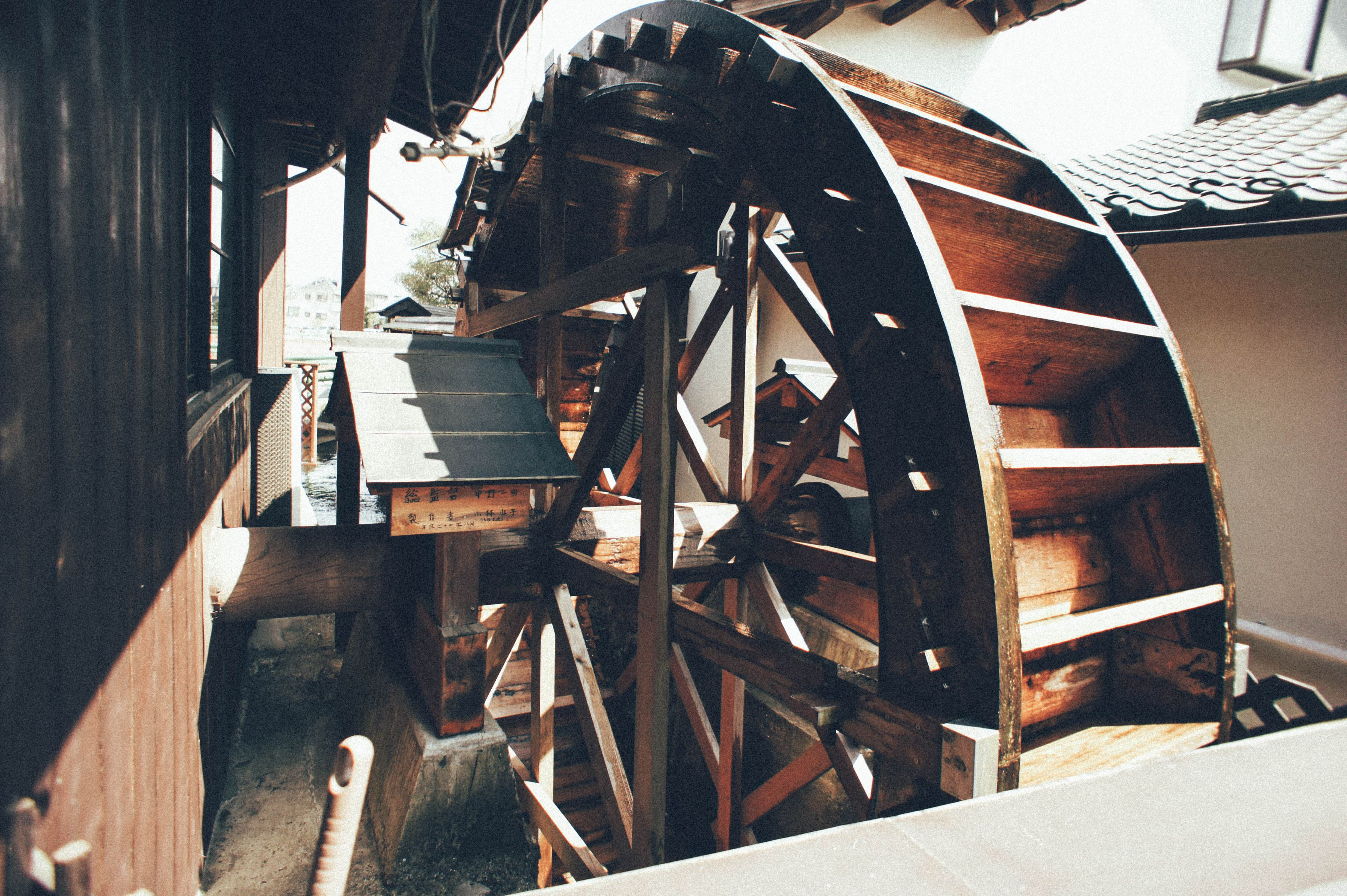 水車がボコボコ音を出して回る すぐ横でコーヒーが飲める野外 席がナカナカ素敵でした。