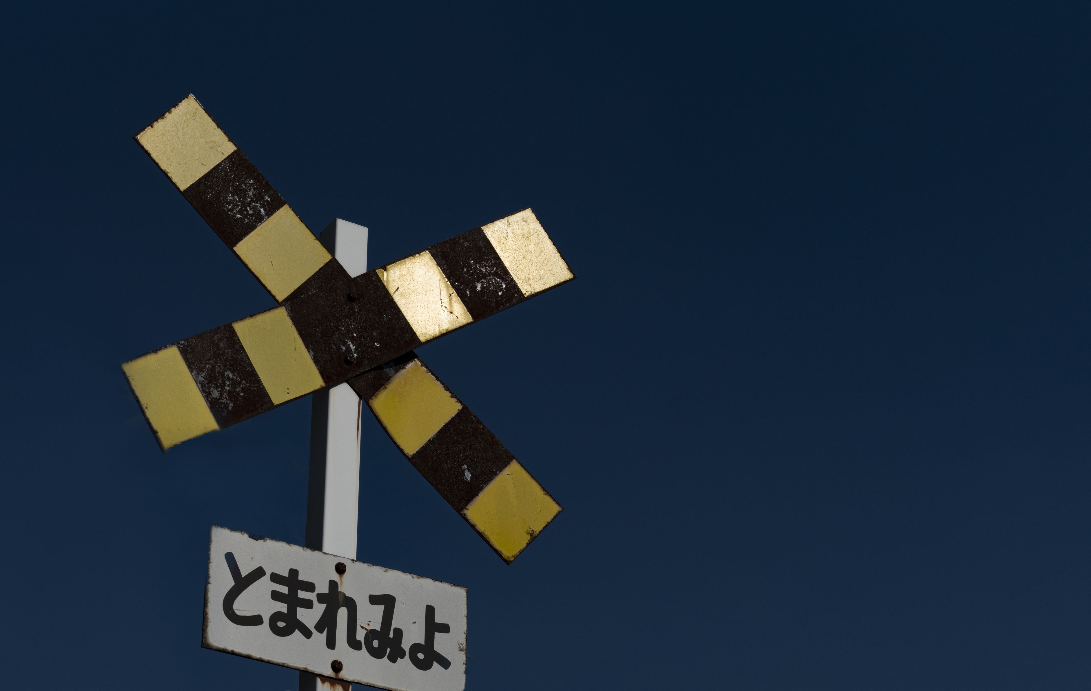 第4種踏切を下から煽りで。 中井精也さん風に… 雲が有れば良かったのですが…