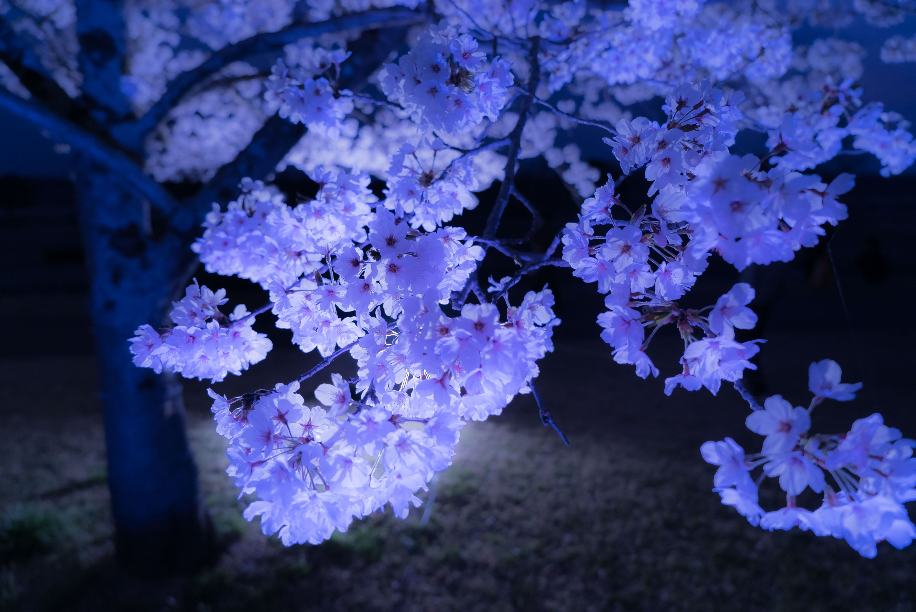 満開の桜のライトアップ。逆光として利用し、花びらのキレイな感じを狙ってみました。