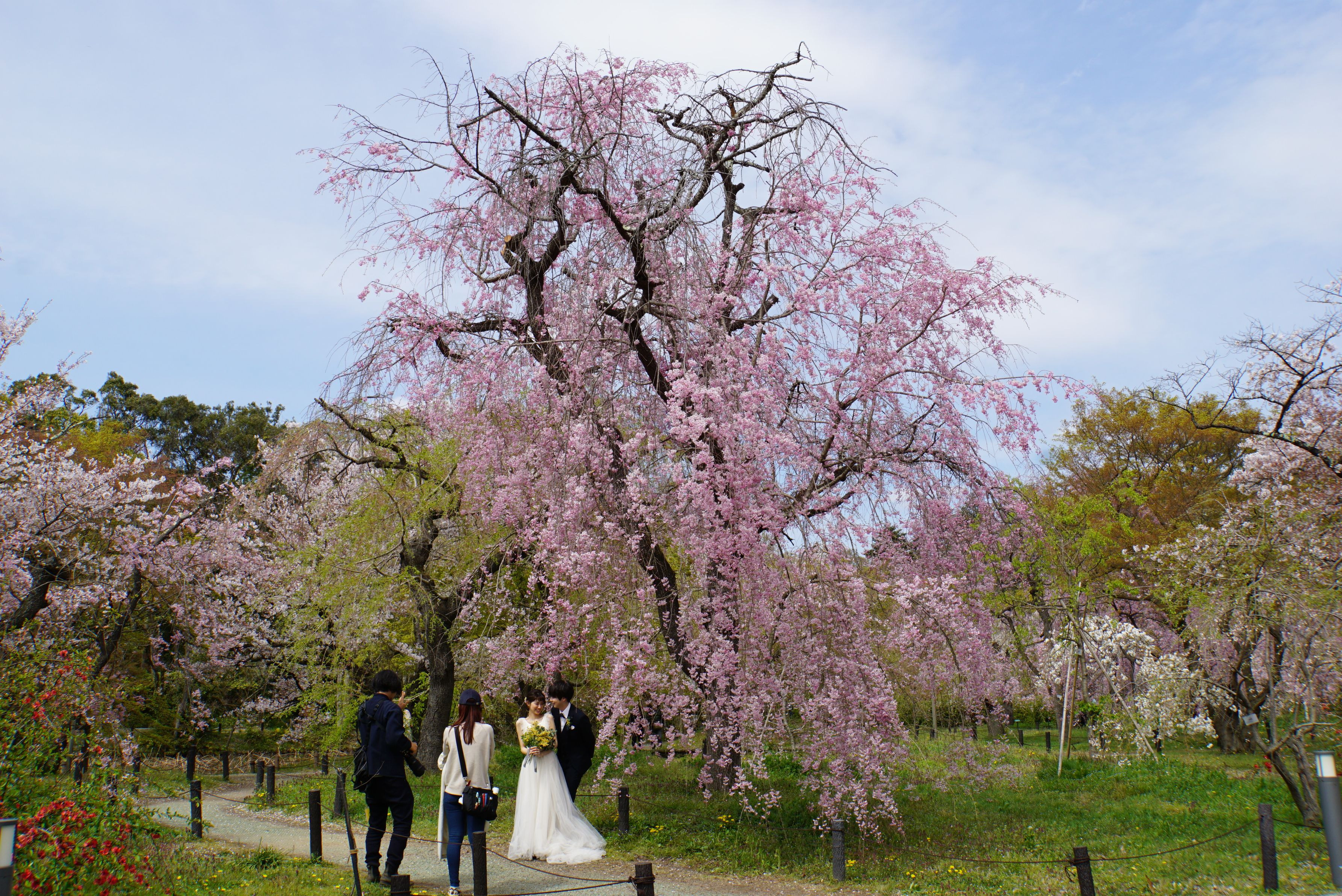 桜の木の下で、前撮りカップルの幸せが伝わった来ました(^^)